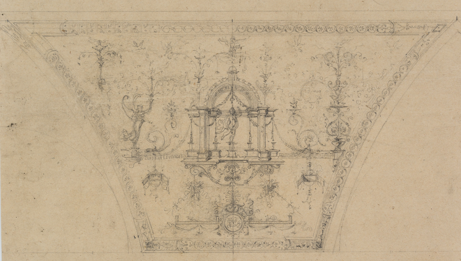 Unknown (19th century), Design of a vault decoration with arabesques, Historicism, 19th century, Pencil