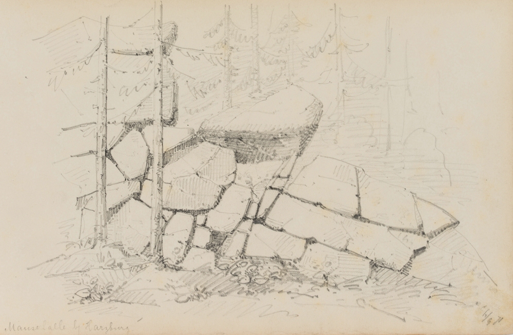 Unbekannt (19. Jahrhundert), Felsformation “Die Mausefalle” im Harz, 1870, Bleistift