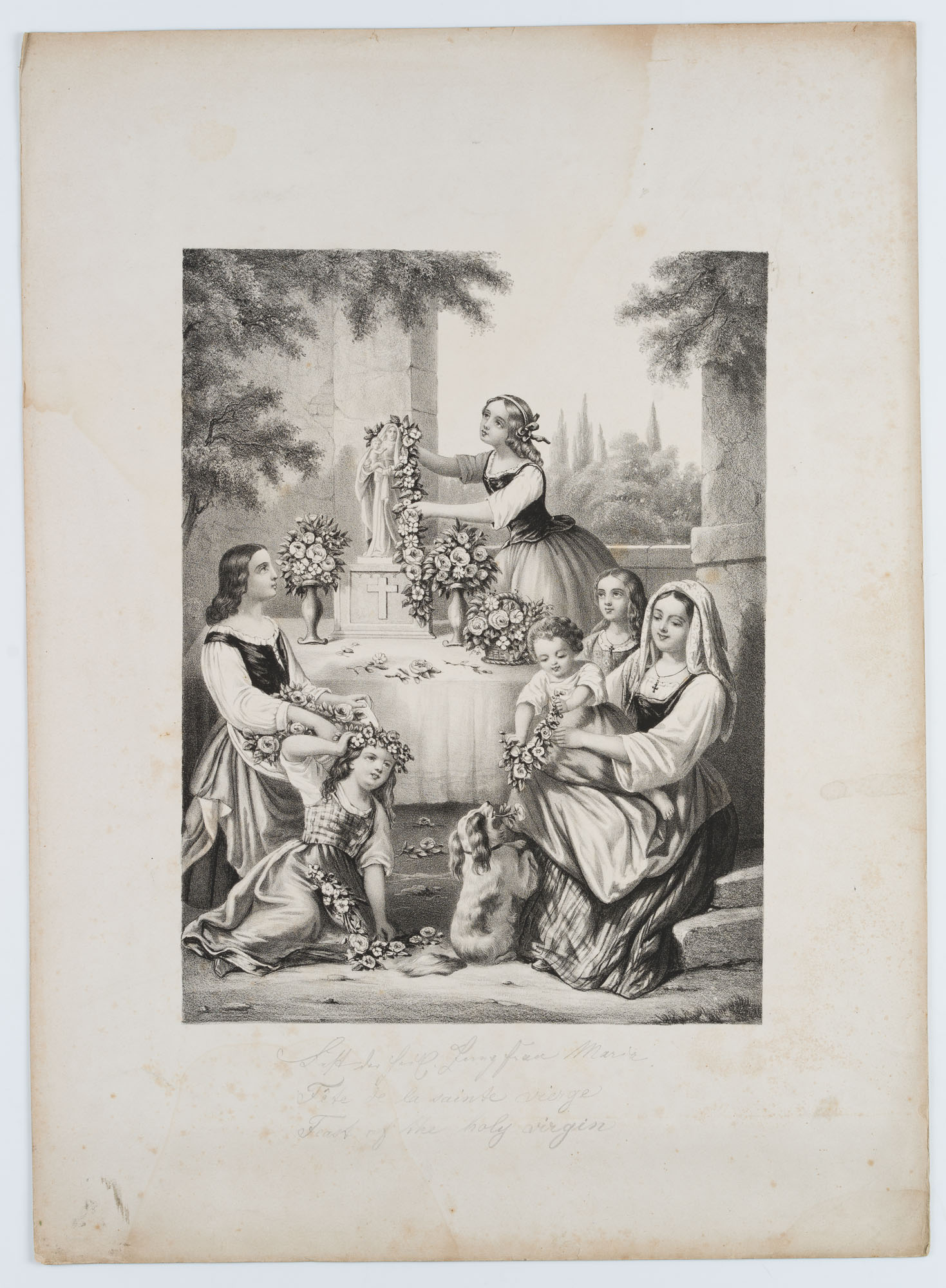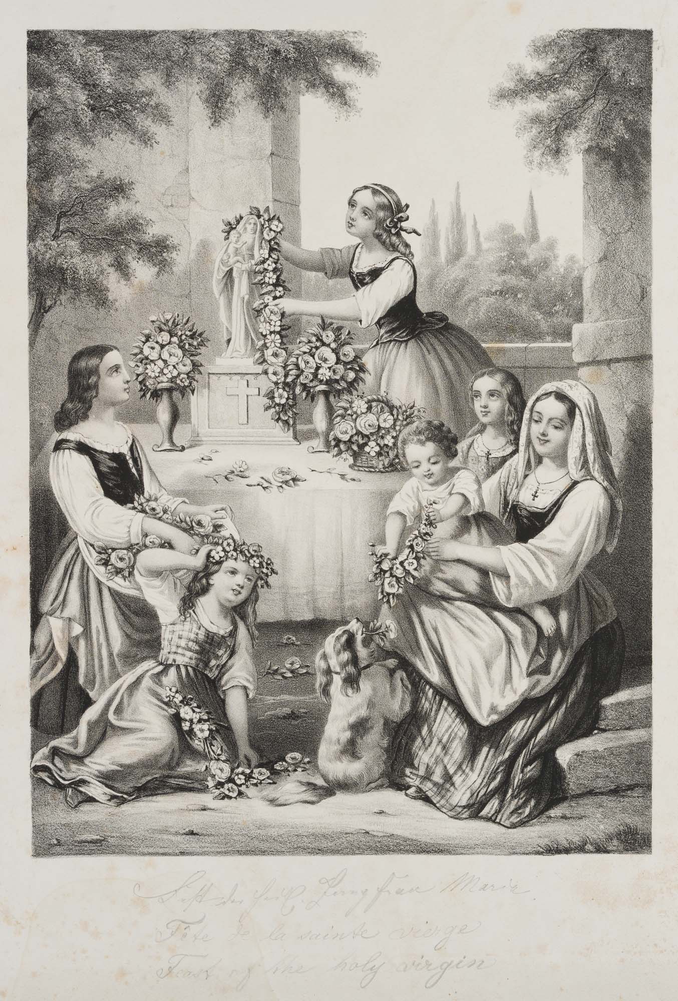 Unbekannt (19. Jahrhundert), Fest der heiligen Jungfrau Maria, Italienerinnen am Madonnenbild, um 1850, um 1850, Lithographie