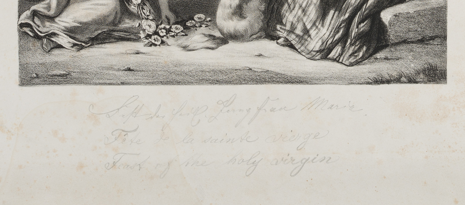 - Bezeichnung: Unterhalb in Bleistift dreisprachig betitelt.