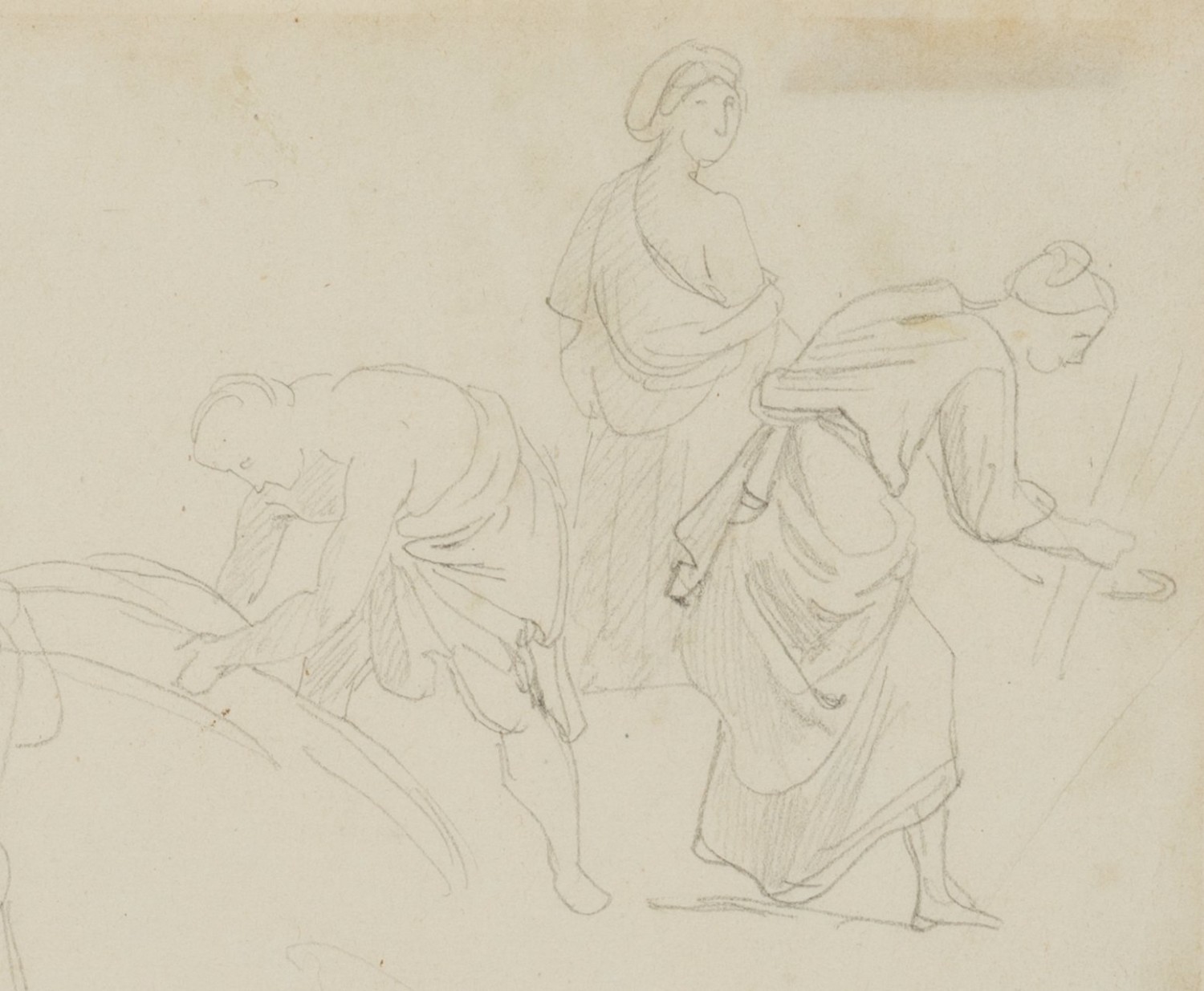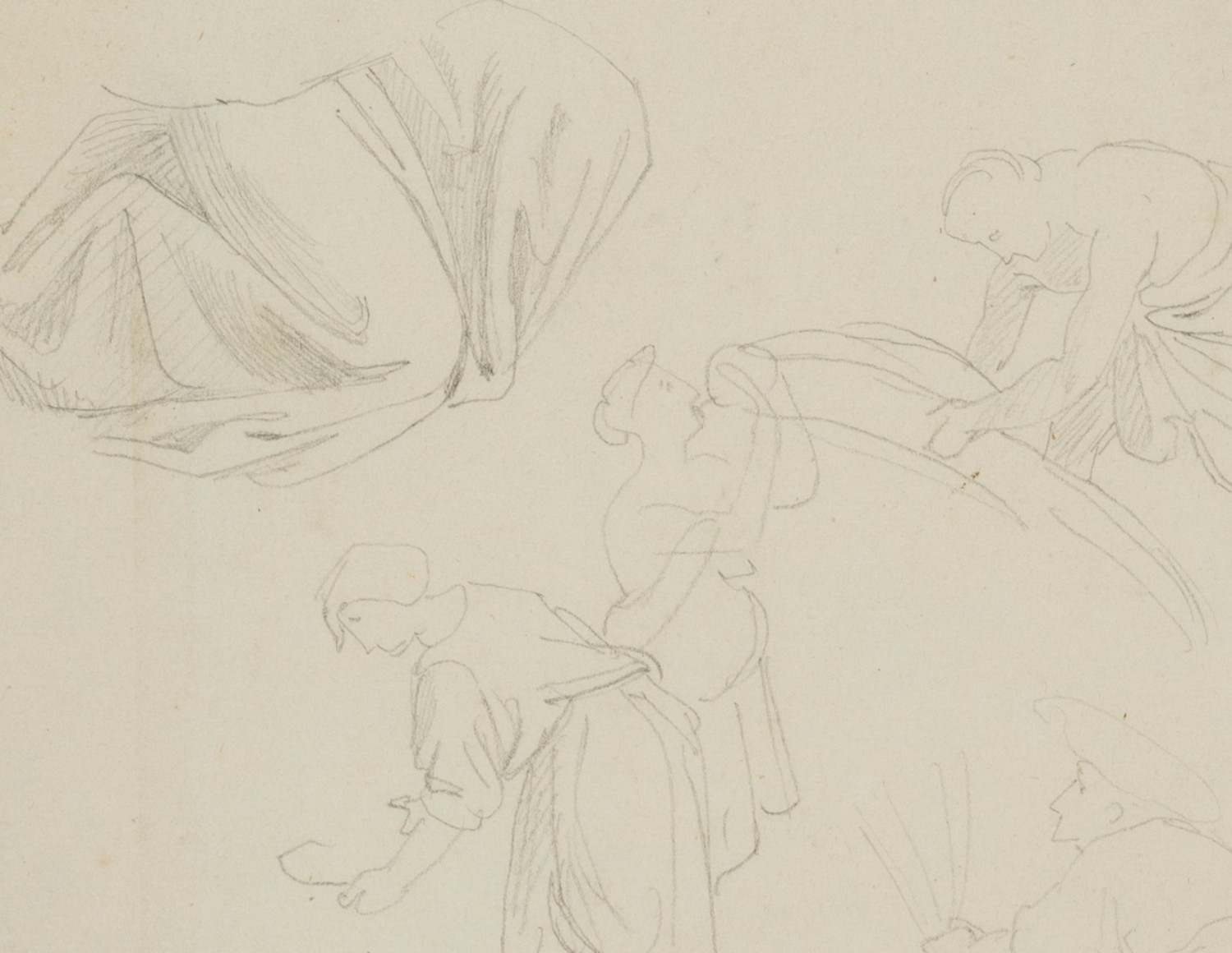 Unbekannt (19. Jahrhundert), Figurenstudien, Bei der Feldarbeit, um 1850, Bleistift