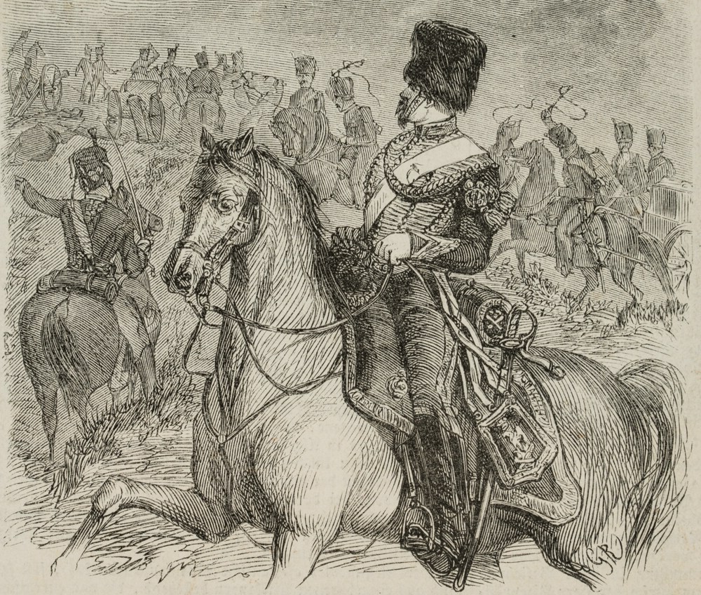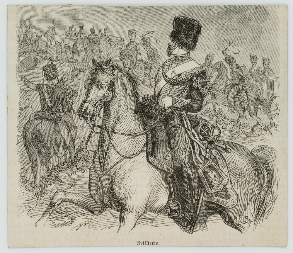 Unbekannt (19. Jahrhundert), Französischer Artillerie-Offizier im Feld, 19. Jahrhundert, Holzstich