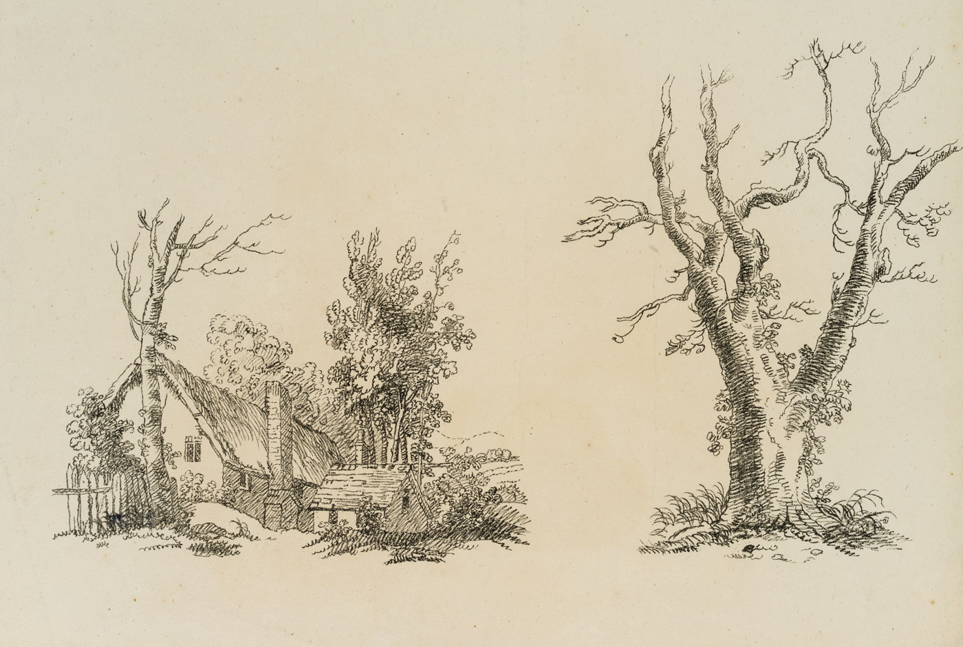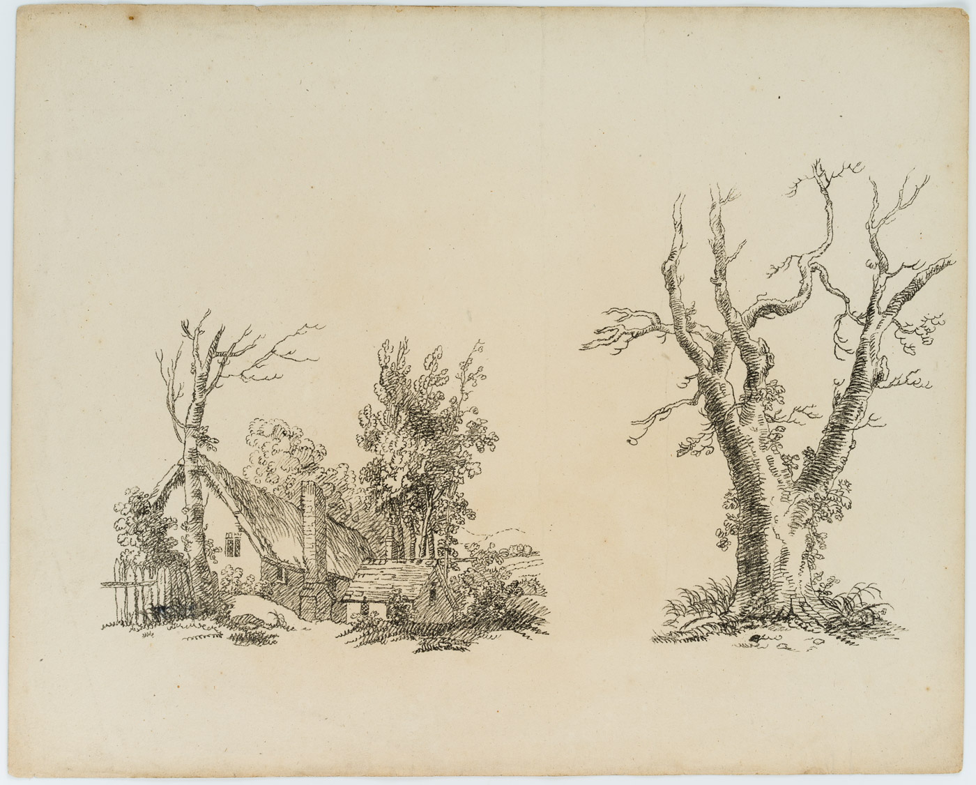 Unbekannt (19. Jahrhundert), Gehöft und Baumstudie, 19. Jahrhundert, Lithographie