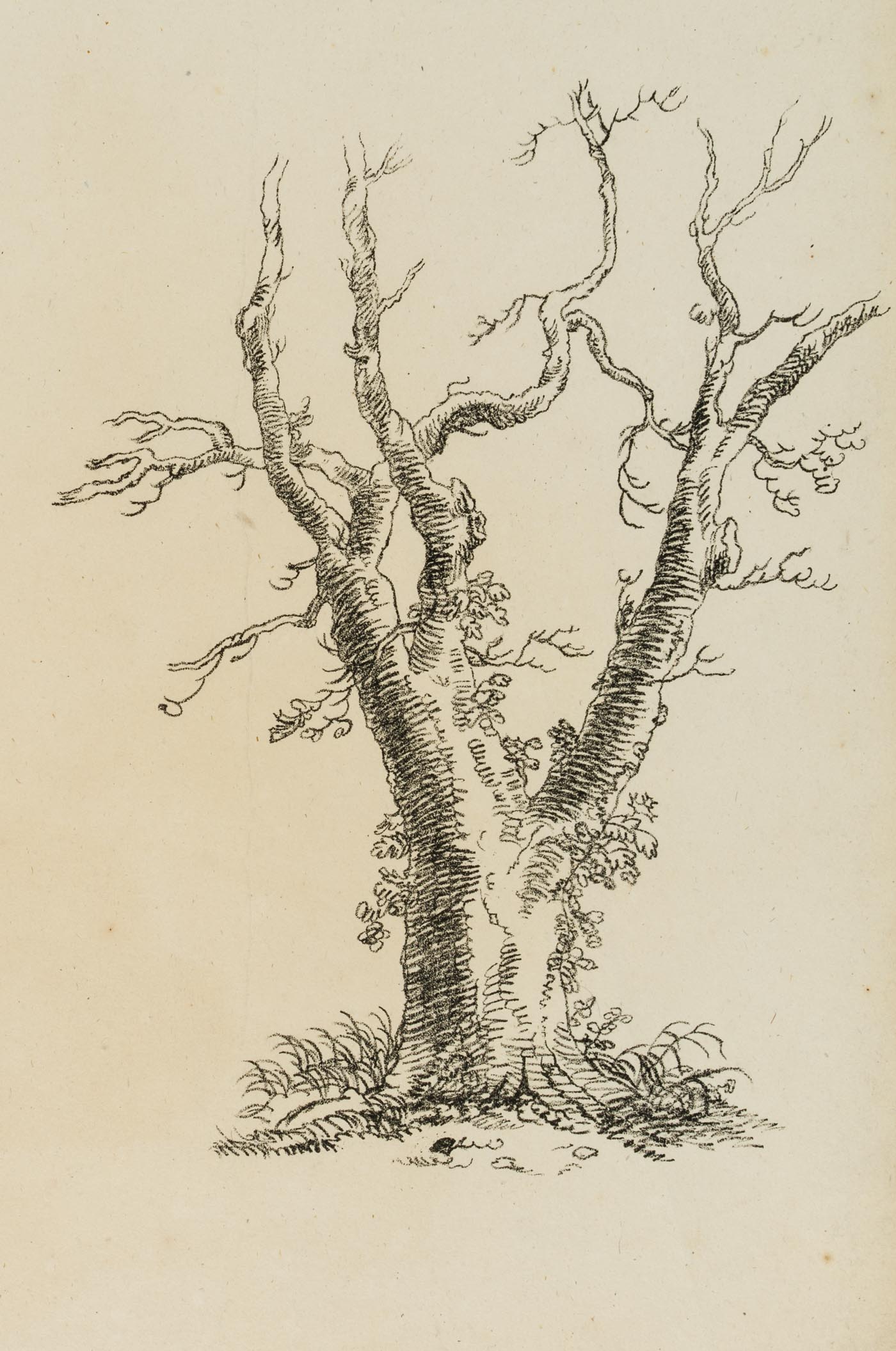 - Inscription: On the right a tree study of a sparse, gnarled tree.