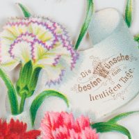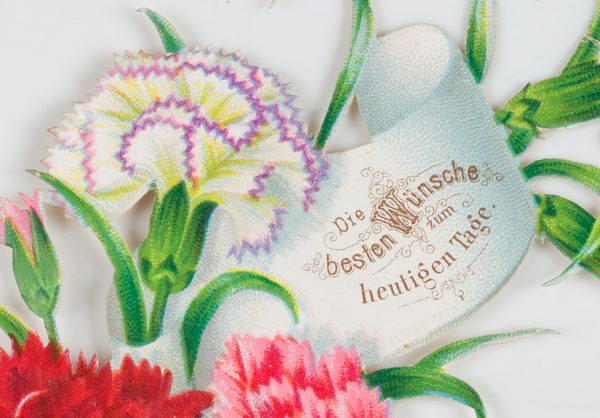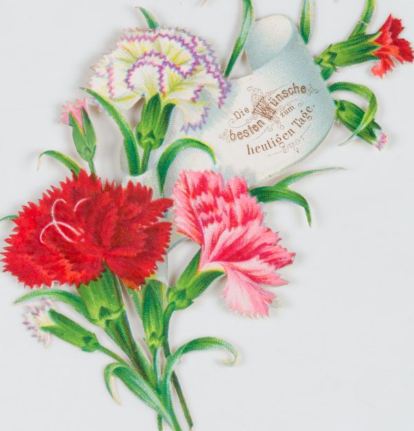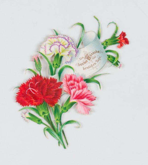 Unbekannt (19. Jahrhundert), Gestanzte Glückwunschkarte in Form eines Blumenarrangements, um 1900, um 1900, Chromolithographie