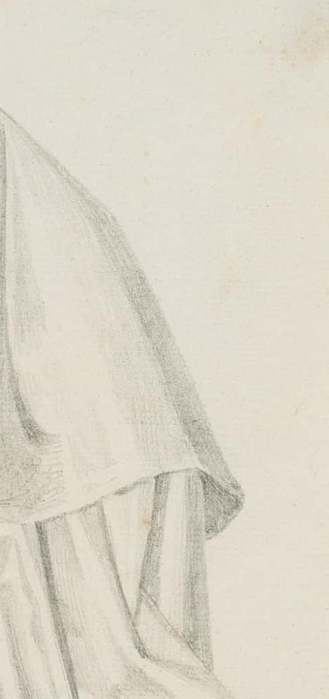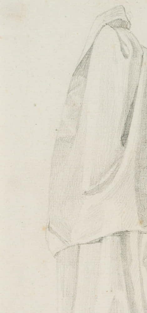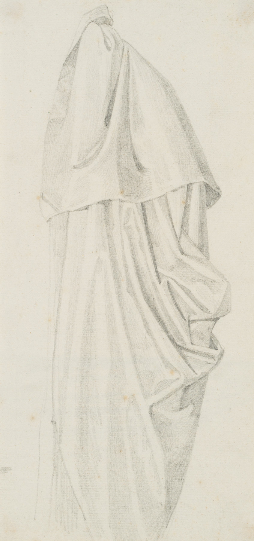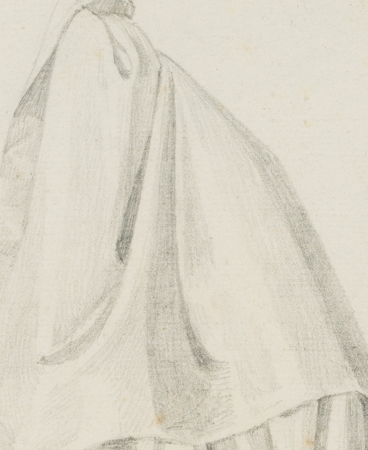 Unbekannt (19. Jahrhundert), Gewandstudie, Mantel mit Faltenwurf, um 1820, Bleistift