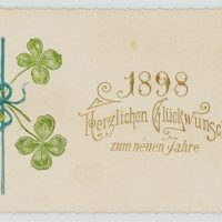 - Beschreibung: Schöne kolorierte Prägekarte, Glückwünsche zum neuen Jahr 1898