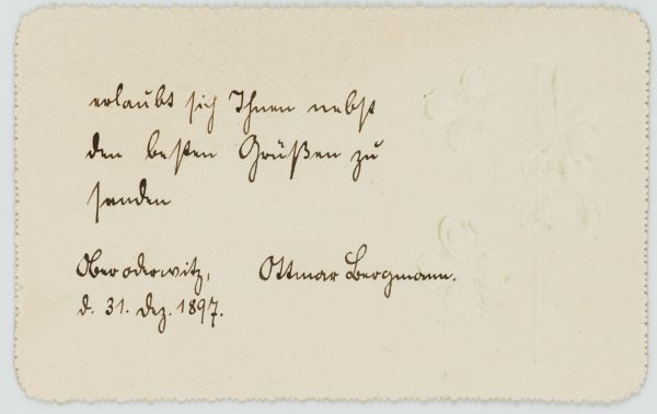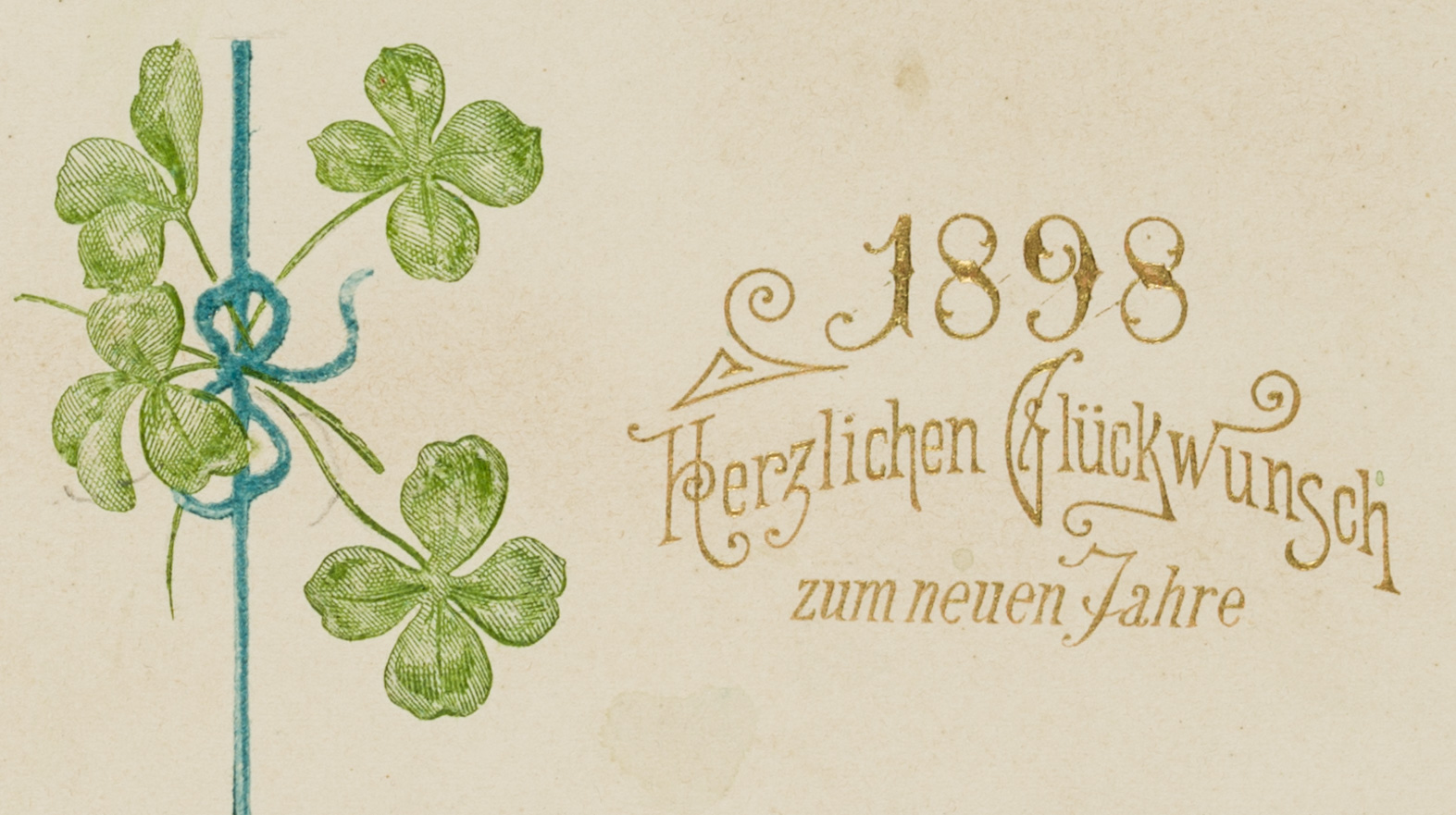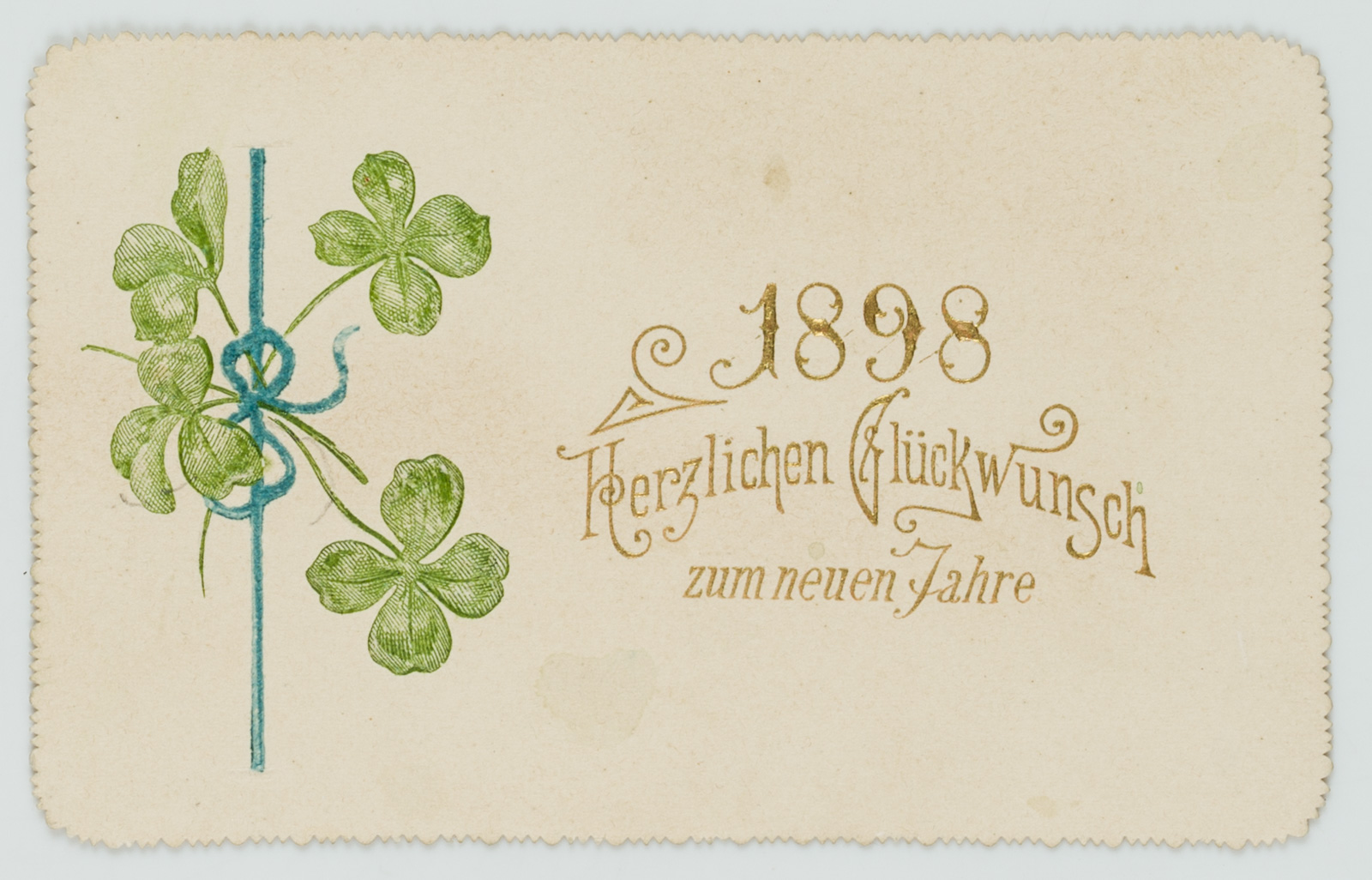 Unbekannt (19. Jahrhundert), Papierantiquität. Glückwunsch-Karte zum neuen Jahr 1898, 1897, Glückwunschbillet