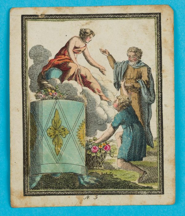 - Description: The card comes from a collection of greeting cards from the Biedermeier period. Please note our other offers. These friendship and greeting cards are lovable, but also particularly interesting testimonies of that time in terms of cultural history. At the end of the 18th century, it became a custom, especially in Vienna, to pay each other a courtesy call at the beginning of the New Year and to send visiting and greeting cards. Under the hinged pedestal inscribed on silk fabric: “Faithful to duty..then you will always feel the happiness of youth.”