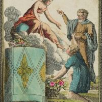 - Beschreibung: Die Karte stammt aus einer Sammlung Glückwunschkarten der Biedermeier Zeit. Beachten Sie dazu unsere weiteren Angebote. Diese Freundschafts- und Glückwunschkarten stellen liebenswerte, aber auch kulturgeschichtlich besonders interessante Zeugnisse jener Zeit dar. Ende des 18. Jahrhunderts wurde es insbesondere in Wien zu einer Sitte, sich zum neuen Jahr Höflichkeitsbesuche abzustatten und Visit- und Glückwunschkarten zu überbringen. Unter dem aufklappbaren Piedestal auf Seidenstoff bezeichnet: “Getreu der Pflicht..dann fühlst du stets das Glück der Jugend.”