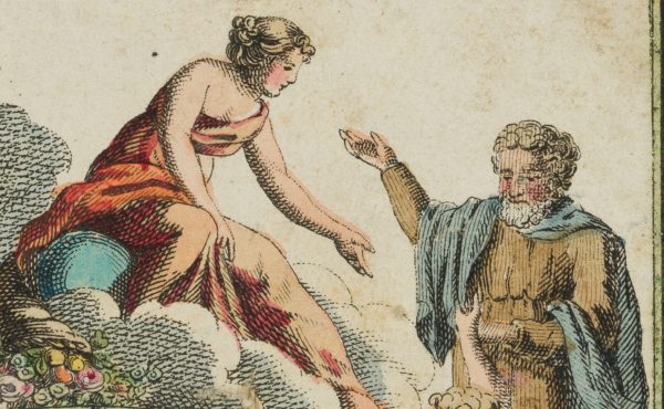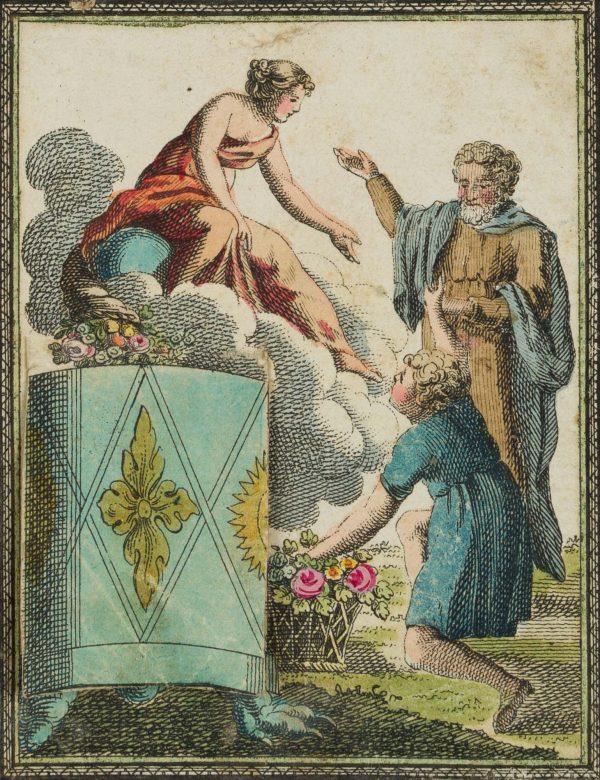 Unbekannt (19. Jahrhundert), Glückwunschkarte, die Göttin Flora auf einer Wolke, um 1900, um 1900, Radierung