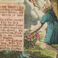 - Technik: Handkolorierte Radierung auf Büttenpapier, aufgezogen auf Büttenpapier