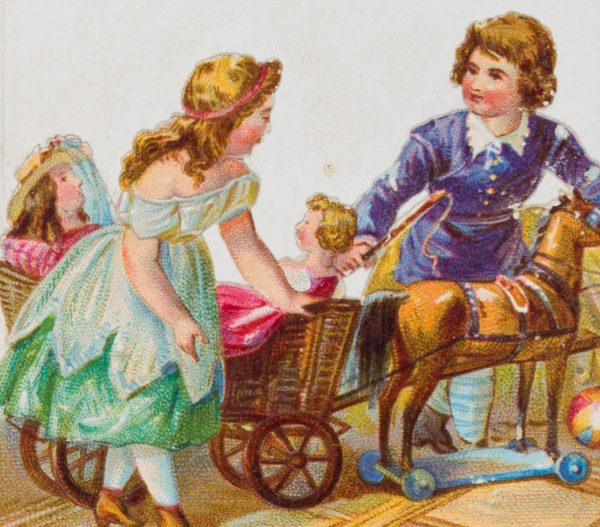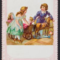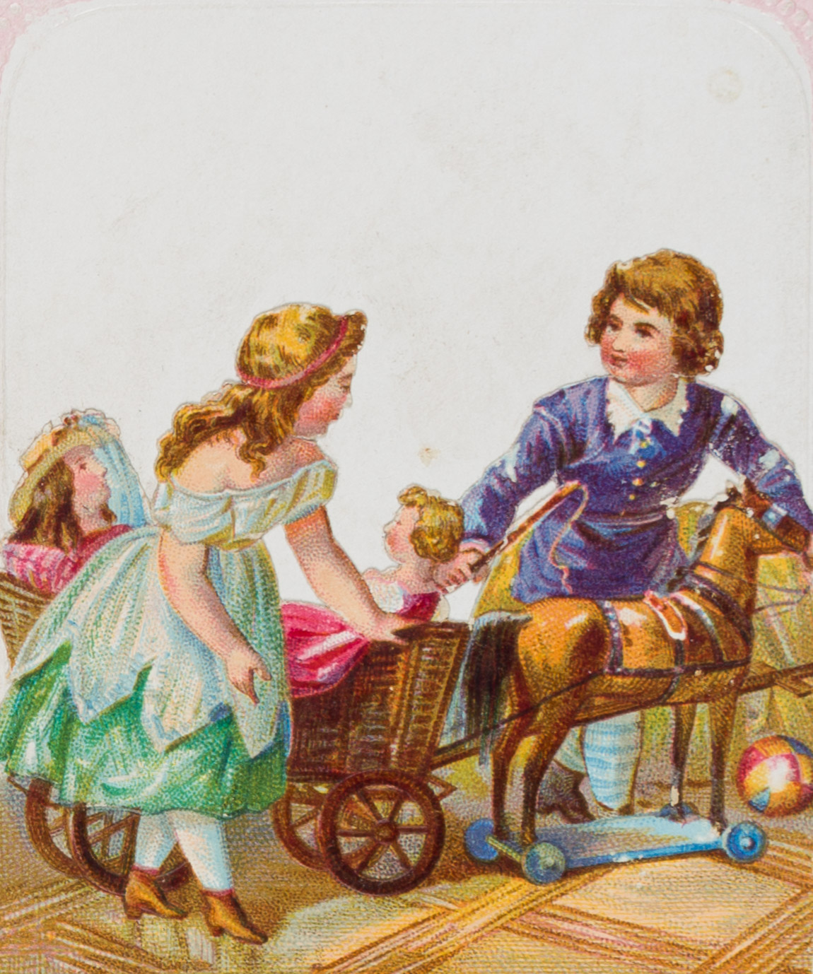 Unknown (19th century), Greeting card Siblings at play, around 1900, embossed litho, c. 1900, Chromolithograph