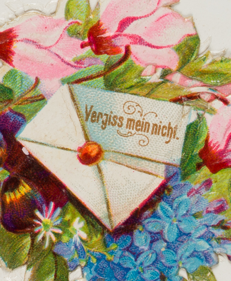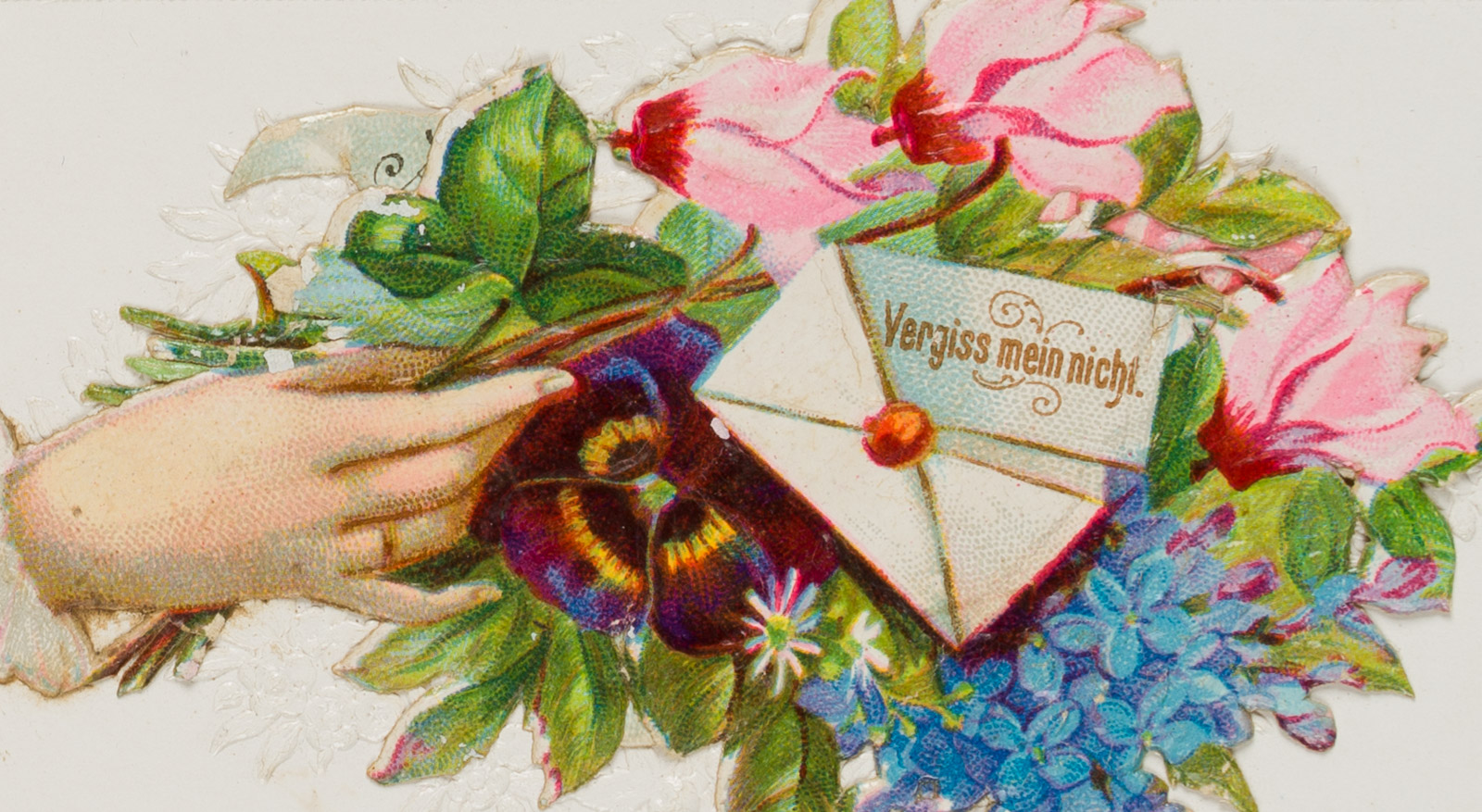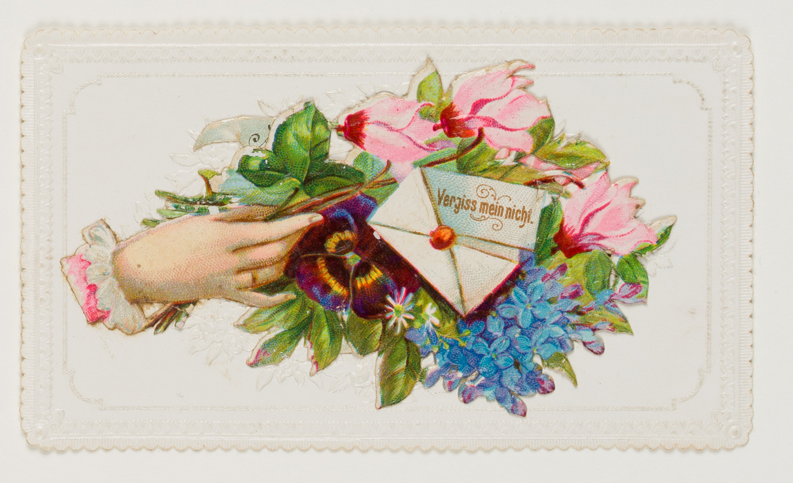 Unknown (19th century), Greeting card With flowers, woman’s hand and love card, 19th century, Chromolithograph