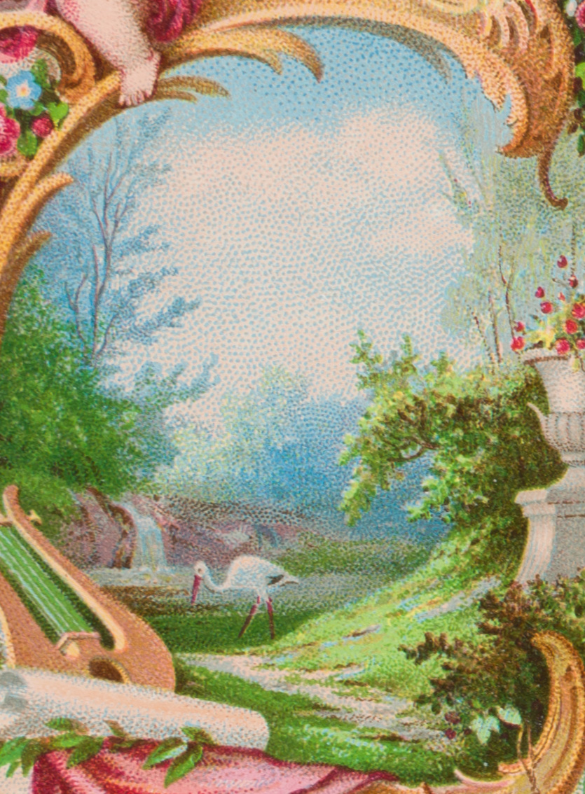 Unknown (19th century), Greeting Card with Idyllic Garden, around 1900, c. 1900, Chromolithograph