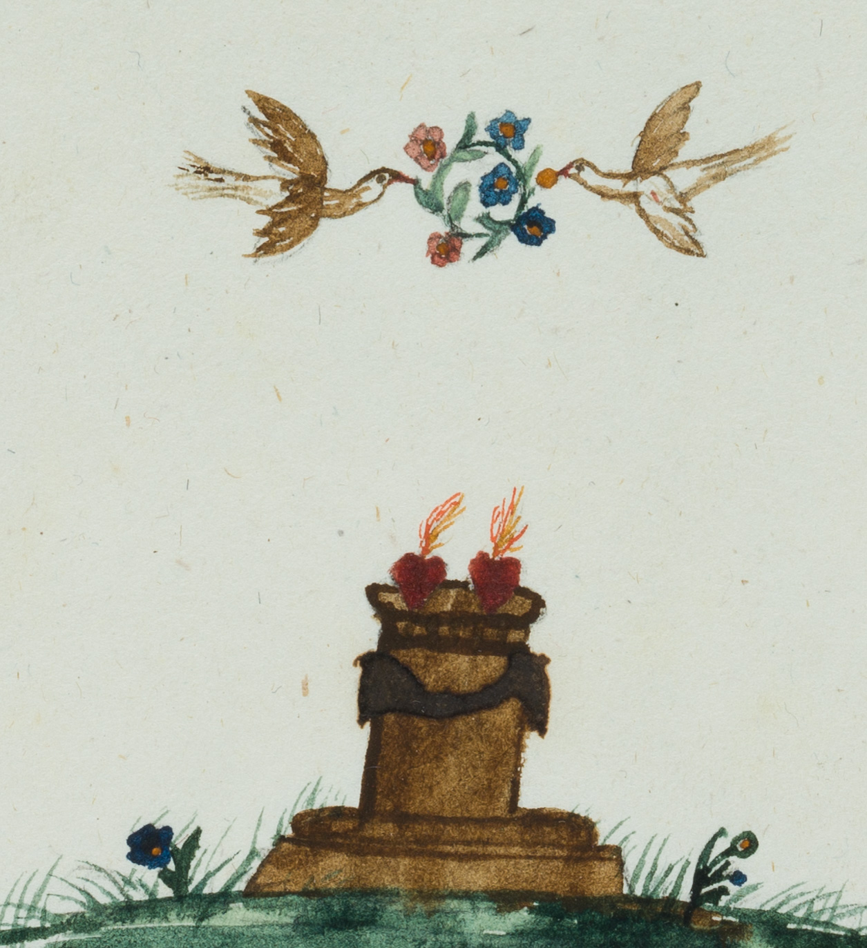 Unbekannt (19. Jahrhundert), Glückwunschkarte: Piedestal mit zwei Herzen, 1817, 1817, Aquarell