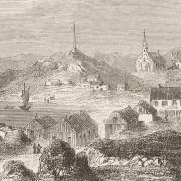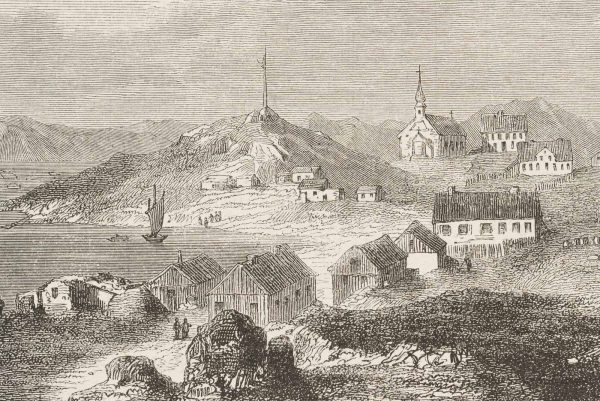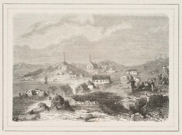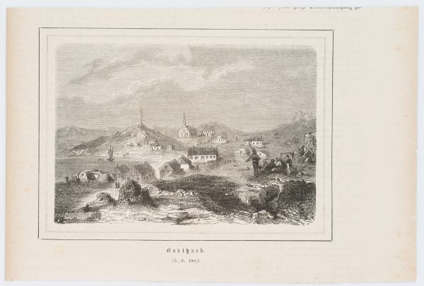 Unknown (19th century), Nuuk, view of the capital of Greenland, Godthåb, “Good Hope”, from a magazine, c. 1850, Wood engraving