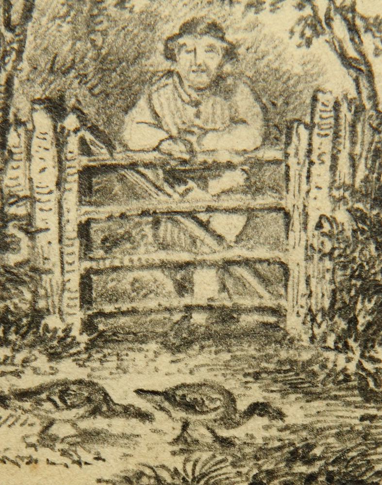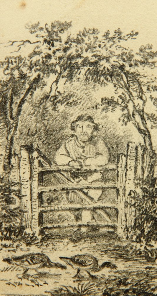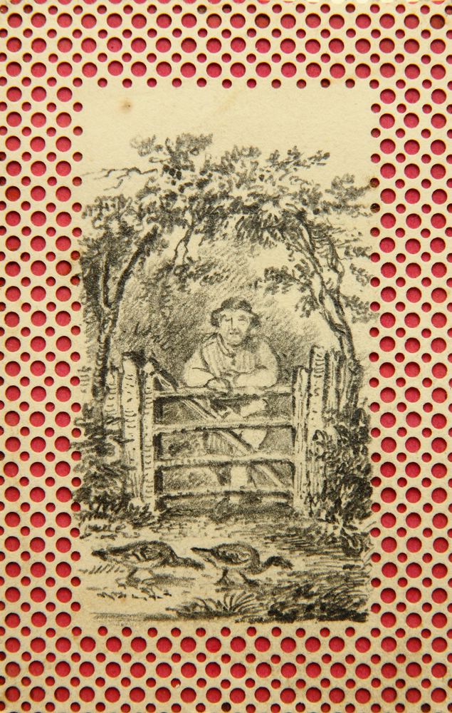 Unbekannt (19. Jahrhundert), Grußkärtchen, Bauer am Gatter lehnend, 19. Jahrhundert, Bleistift