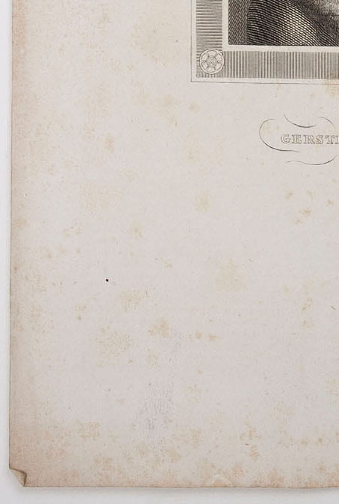 • Description: Gerstenberg was born the son of a cavalry captain in Danish service. He attended his first school in Husum, where his father was stationed at the time. From there he was able to transfer to the Christianeum in Altona. From 1757 onwards, he studied law at the University of Jena, which he discontinued at the age of twenty. In Jena he also became a member of the German Society , where he also made his first literary attempts. Gerstenberg financed his subsequent cavalier tour more or less poorly through various house teaching positions. In 1760, Gerstenberg joined the Danish army as a cornet and served as an adjutant for two years on the staff of Major General Peter Elias von Gähler. During this time he wrote an equestrian manual under the pseudonym Ohle Madsen and translated Versuch über den großen Krieg by Jean Baptiste d’Espagnac. Gerstenberg made his debut with his Tändeleyen (1759) in the style of Hallian anacreontics. His Kriegslieder (1762) earned him great critical praise when they appeared, but are almost forgotten today. Together with his fellow student Jacob Friedrich Schmidt, Gerstenberg attempted to publish the Holstein weekly Der Hypochondrist from 2 January 1762. They chose “Zacharias Jernstrup” as their joint pseudonym and were supported in their work by Kleen, Loppnau and Oertling. After only 25 numbers, they went bankrupt on 19 June 1762. Gerstmann tried again in 1771 to bring the journal to life, but again in vain. In September 1763 Gerstenberg became engaged to Sophie Trochmann in Schleswig, whom he married on 12 July 1765. With her he had seven children. Due to the death of King Frederick V, the army was restructured and Gerstenberg was put on half pay. Gerstenberg settled with his family in Copenhagen. There he soon became a welcome guest in the salon of the German diplomat Johann Hartwig Ernst von Bernstorff. The literary circle around Friedrich Gottlieb Klopstock also welcomed him. Gerstenberg’s most important acquaintances and friends from these years were Johann Andreas Cramer, Gottfried Benedict Funk, Balthasar Münter, Friedrich Gabriel Resewitz, Johann Heinrich Schlegel and Helfrich Peter Sturz. Over time, a small circle formed around Gerstenberg, which indulged not only in literature but also in domestic music. Energetically supported by his highly musical wife, Gerstenberg was able to publish his cantata Ariadne auf Naxos in 1767. During his time in Copenhagen, Gerstenberg maintained an extensive correspondence with Johann Gottfried Herder, Friedrich Nicolai and some members of the Göttingen Hainbund, among others. In 1768 his main work, the tragedy Ugolino , was published, with which Gerstenberg prepared the ground for the Sturm und Drang. The plot of the drama is based on the tale of woe of Ugolino della Gherardesca , who was imprisoned in a tower with his sons and starved to death; moreover, the story is the subject of the XXXIIIth canto in Dante’s “Divine Comedy”. During the campaign against the Russians (1763) he was promoted to Rittmeister and as such joined “Eickstedt’s Dragoon Regiment” in October 1767, leaving the army there in January 1771. In 1768, through the administration headed by Minister Johann Friedrich Struensee, Gerstenberg was appointed a deputy to the German Chamber and became an assessor in the Commerzdeputation. Already heavily indebted for a long time, Gerstenberg was unable to pay off this debt even through his last appointments.C3nder. Another complicating factor was that the diplomat Bernsdorff and the minister Ernst Heinrich von Schimmelmann considered him “. unreliable in money matters and work-shy”. Nevertheless, Gerstenberg was appointed Danish consul in Lübeck in 1775. In 1783 he resigned from this post and retired with his family to Eutin, where his wife died two years later after a long illness. At the beginning of 1786 Gerstenberg settled in Altona and was appointed there in 1789, with the help of friends, as director of justice of the royal lottery and held this office until his retirement in 1812. During this time he became increasingly involved with the philosophy of Immanuel Kant and kept up a lively correspondence with Friedrich Heinrich Jacobi , Charles de Villers and the brothers Christian and Friedrich Leopold zu Stolberg-Stolberg. Gerstenberg was so convinced of Kant’s theories that at the age of 75 he applied for the chair of critical philosophy at the University of Kiel, but in vain. He then lived a very secluded life and was almost forgotten. Gerstenberg died in Altona on November 1st 1823 at the age of 86. Description: foxing.