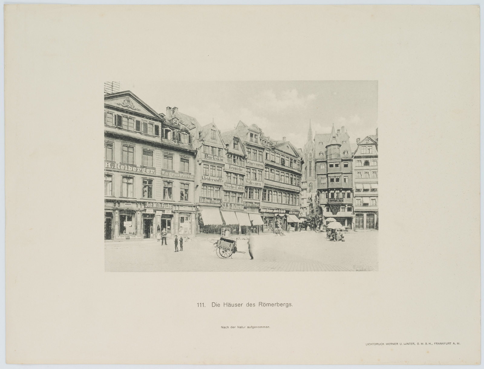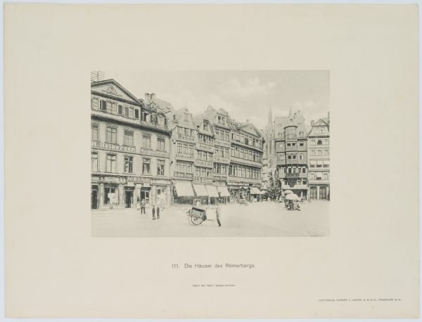 Unbekannt (19. Jahrhundert), “Die Häuser des Römerbergs. Nach der Natur aufgenommen”, Aus dem alten Frankfurt am Main, Werner & Winter, um 1900, Lichtdrucktafel nach einer Fotografie, um 1900, Photogravure