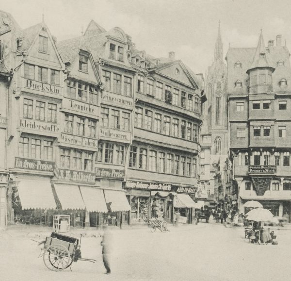 - Beschreibung: Unter der Darstellung betitelt, unten rechts bezeichnet “Lichtdruck Werner U. Winter, G.M.B.H., Frankfurt am Main.”. Einzigartige Bilddokumentation aus dem Frankfurt der Jahrhundertwende. Aus: Fay, (C. F.). Bilder aus dem alten Frankfurt am Main. Nach der Natur (aufgenommen). 1896-1911., Lichtdrucktafeln nach Fotografien.