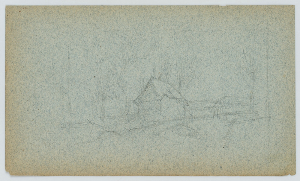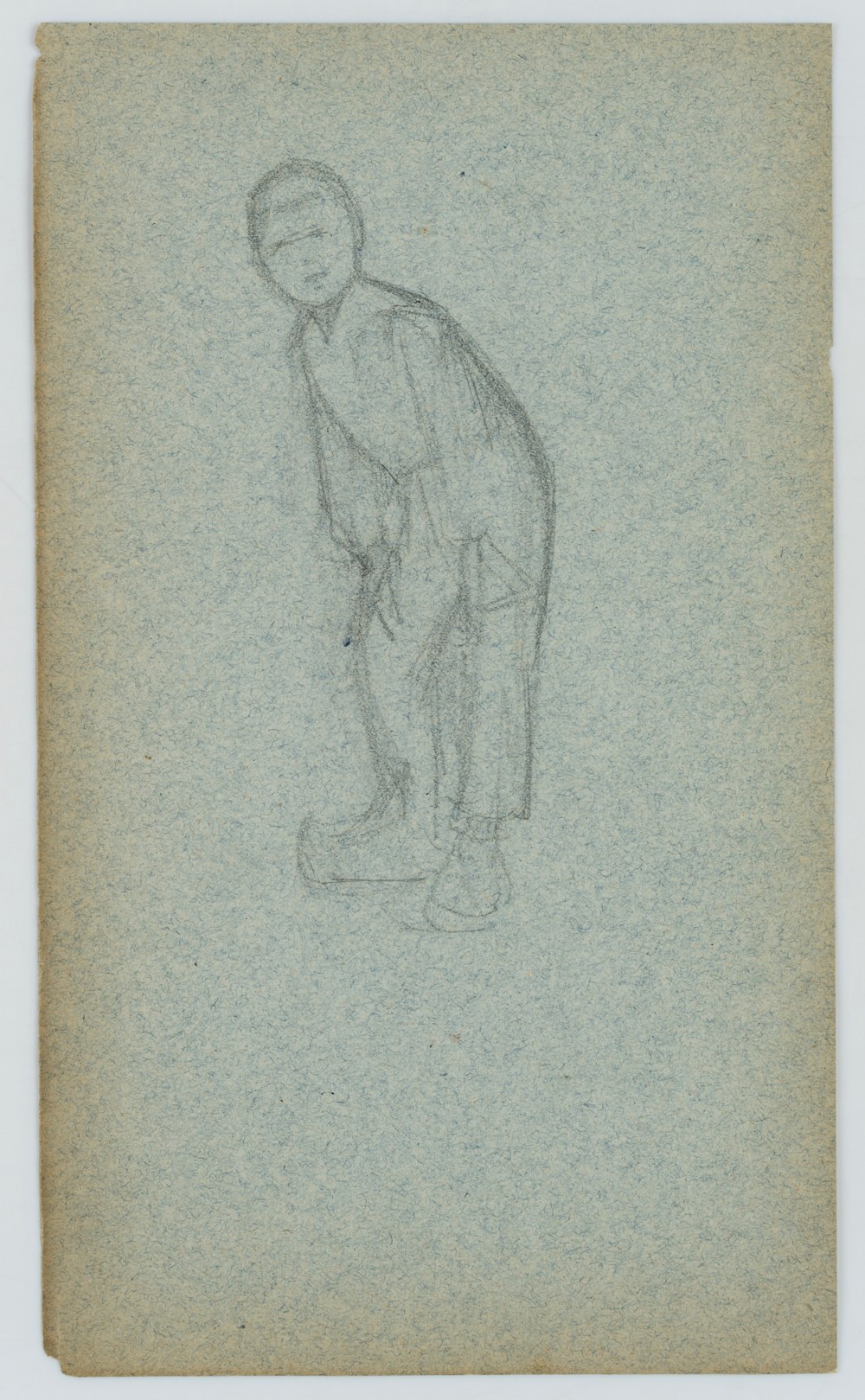 • Description: Full-length study of the posture of a boy in peasant costume. A farmstead is sketchily depicted on the reverse.