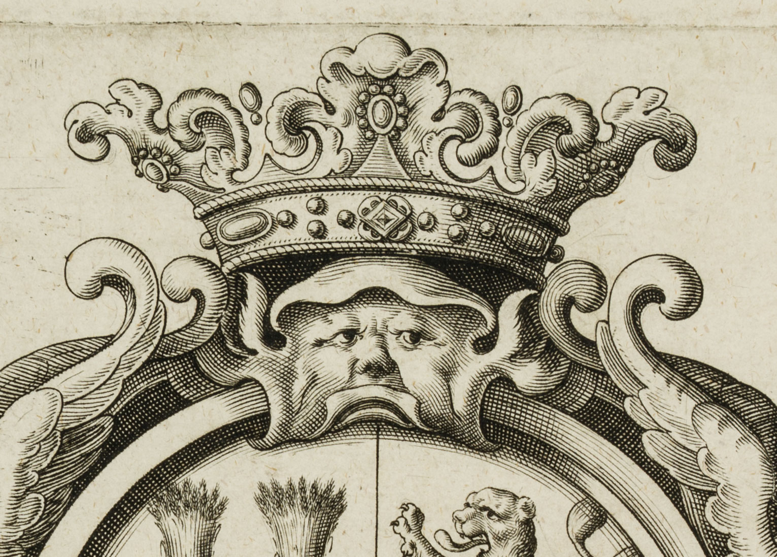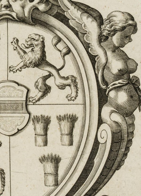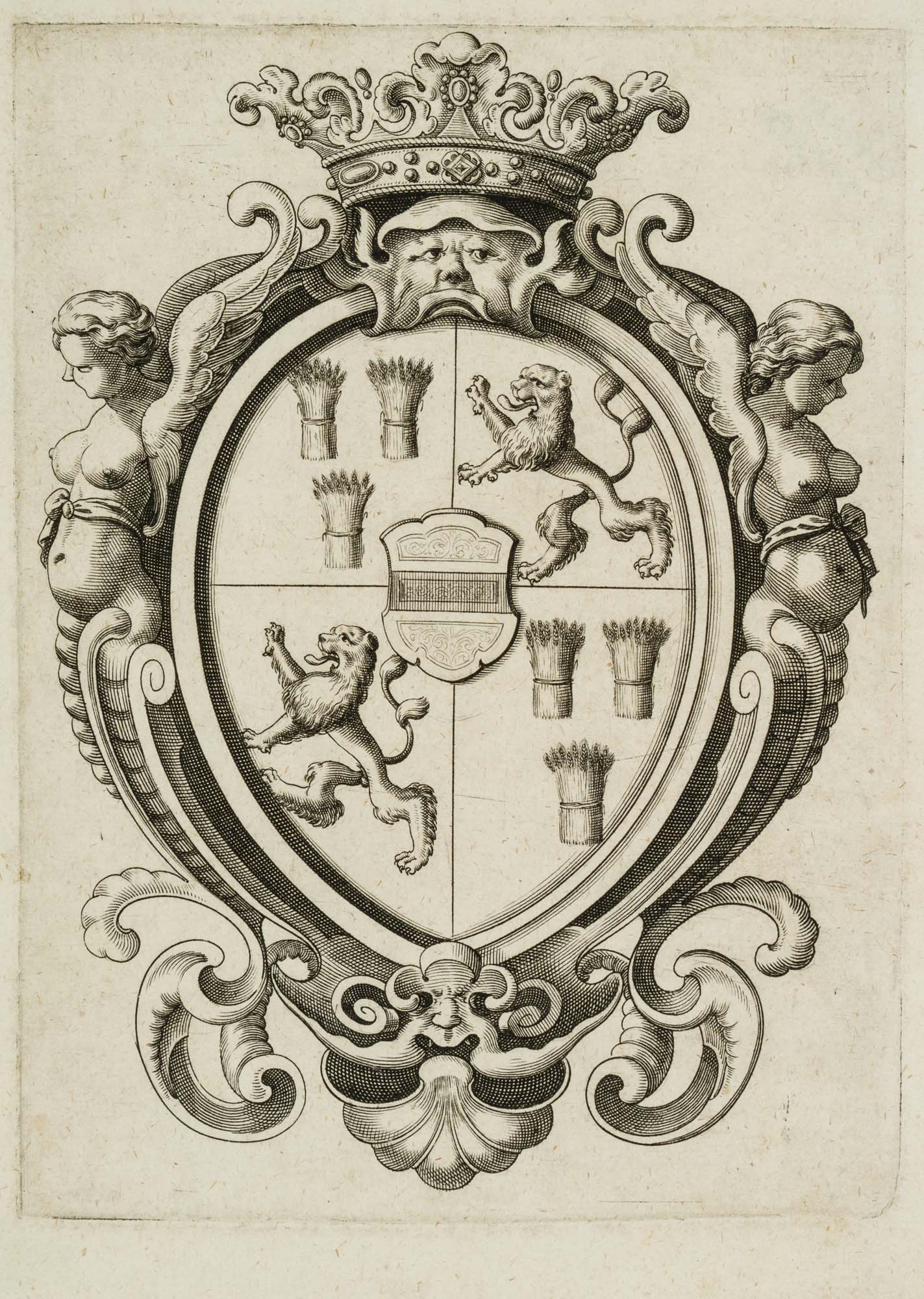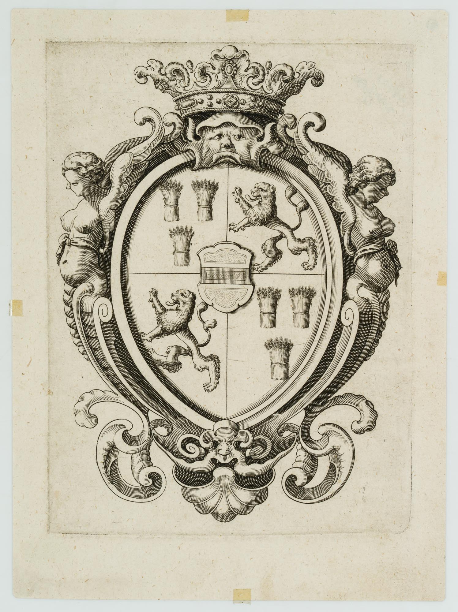 Unknown (19th century), Heraldry coat of arms with lions and sheaves, 19th century, Copper engraving