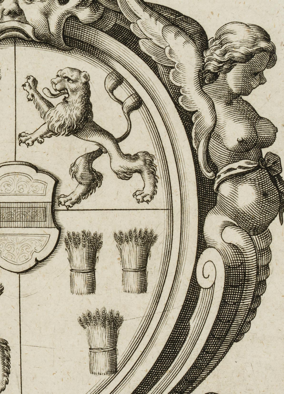 Unbekannt (19. Jahrhundert), Heraldik Wappen mit Löwen und Garben, 19. Jahrhundert, Kupferstich