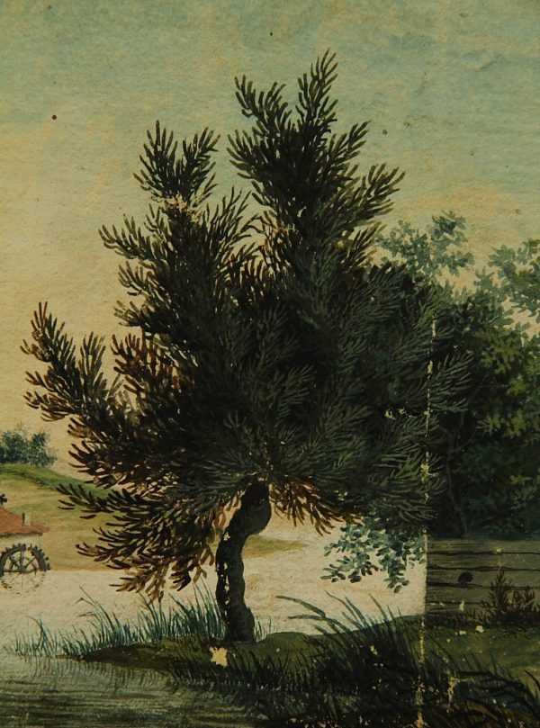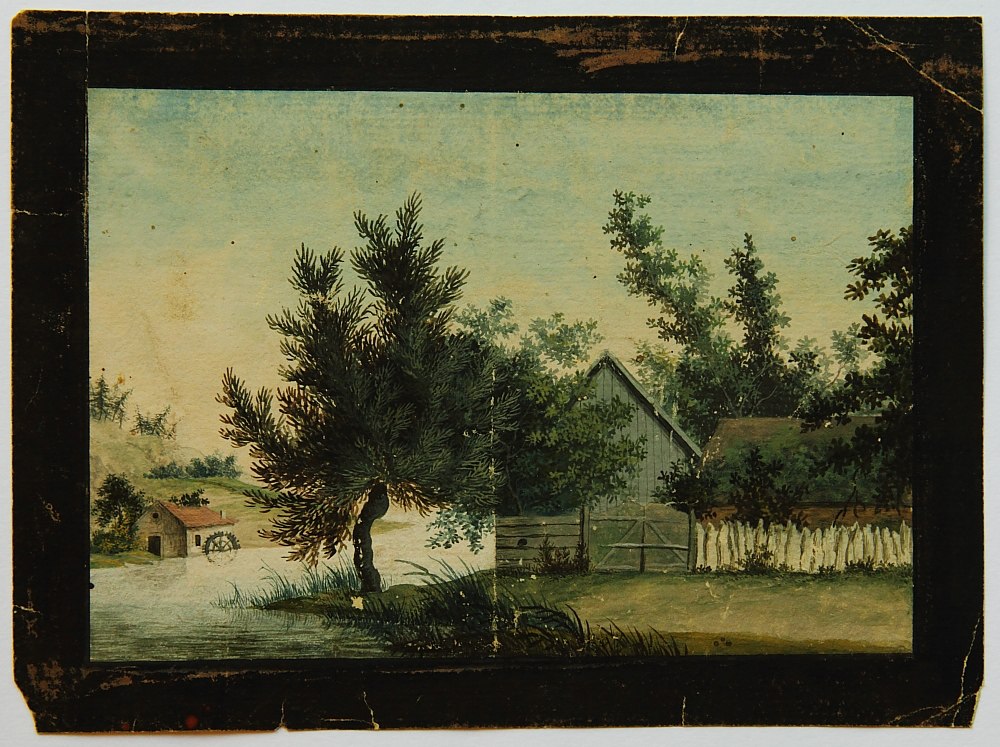 Unknown (19th century), Farm and mill on the river, c. 1820, Gouache