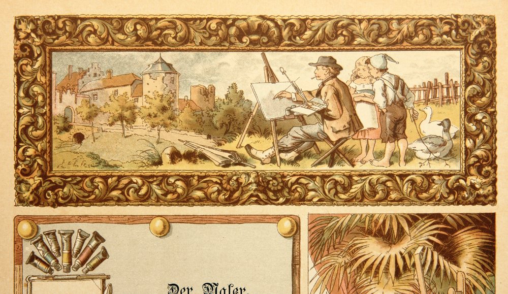 Unbekannt (19. Jahrhundert), Hommage an die Malkunst, 19. Jahrhundert, Chromolithographie