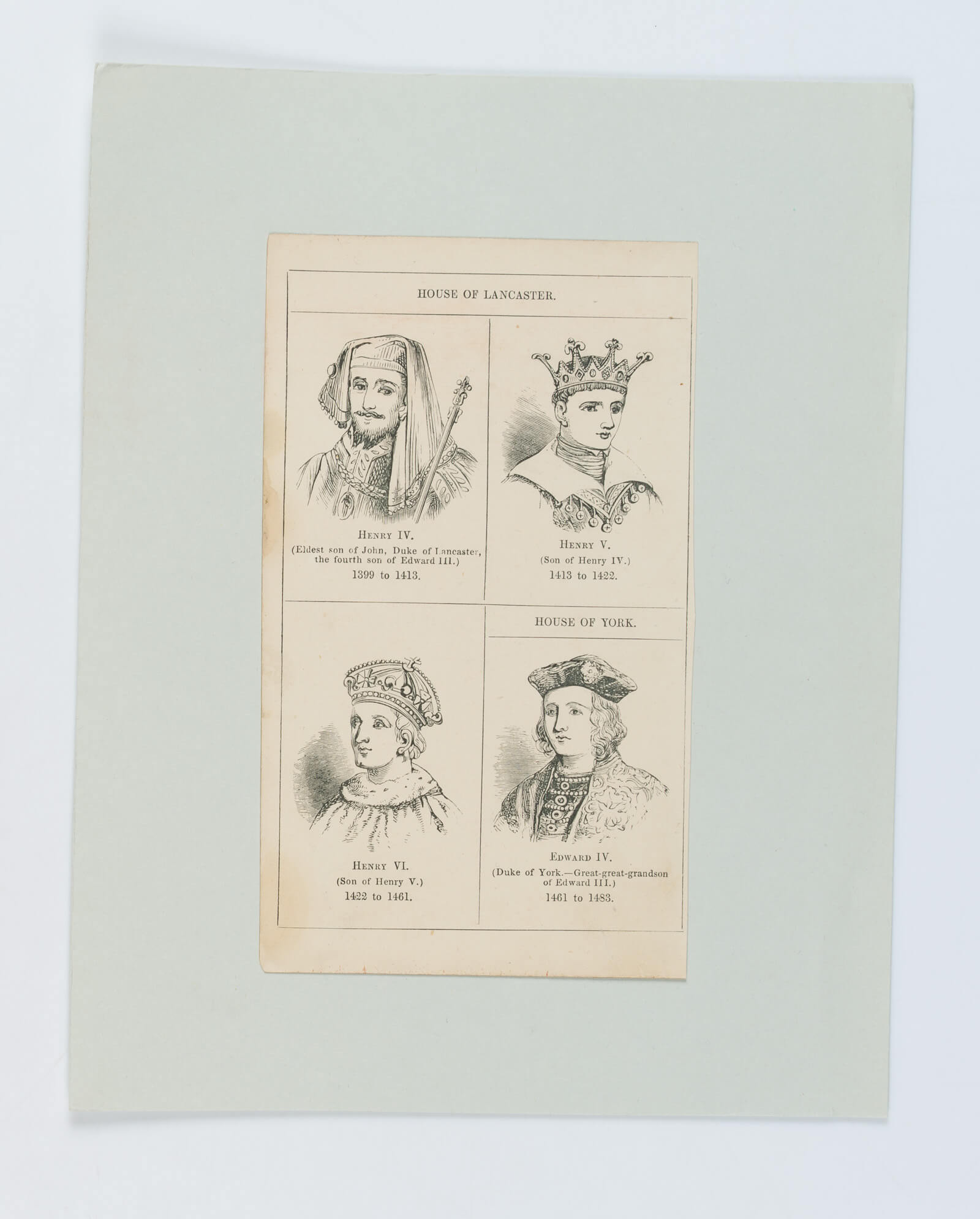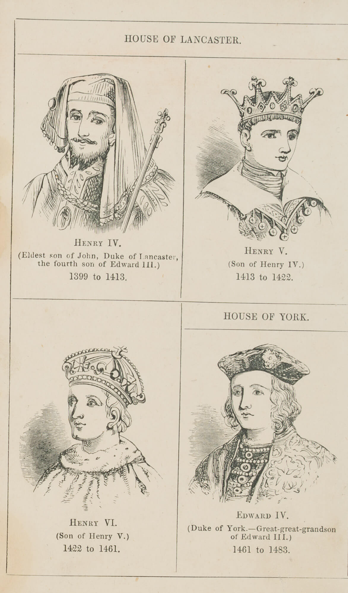 - Description: Portraits of the kings from the House of Lancaster and York: Henry IV, Henry V, Henry VI and Edward IV.