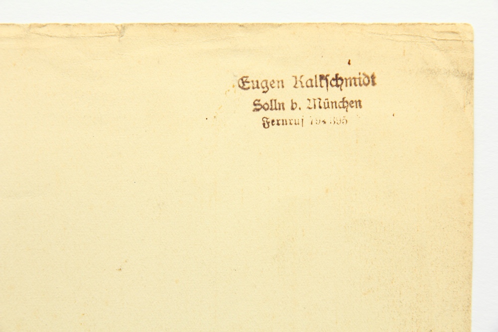 • Bezeichnung: Unterhalb der Darstellung im Stein bezeichnet. Rückseitig befindet sich der Sammlungsstempel von “Eugen Kallschmidt – Solln b. München – Fernruf 79-395”.