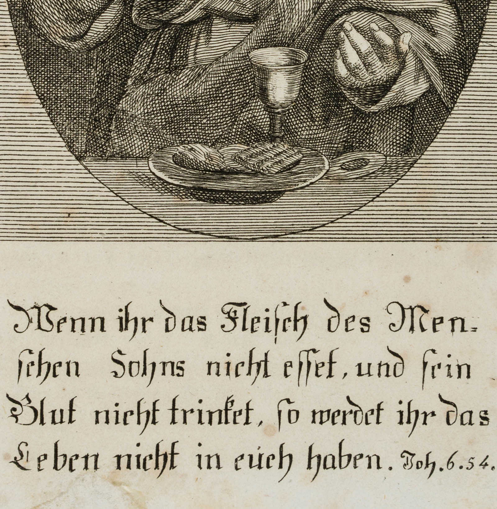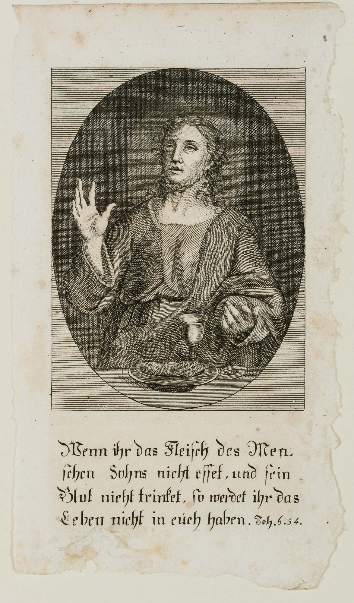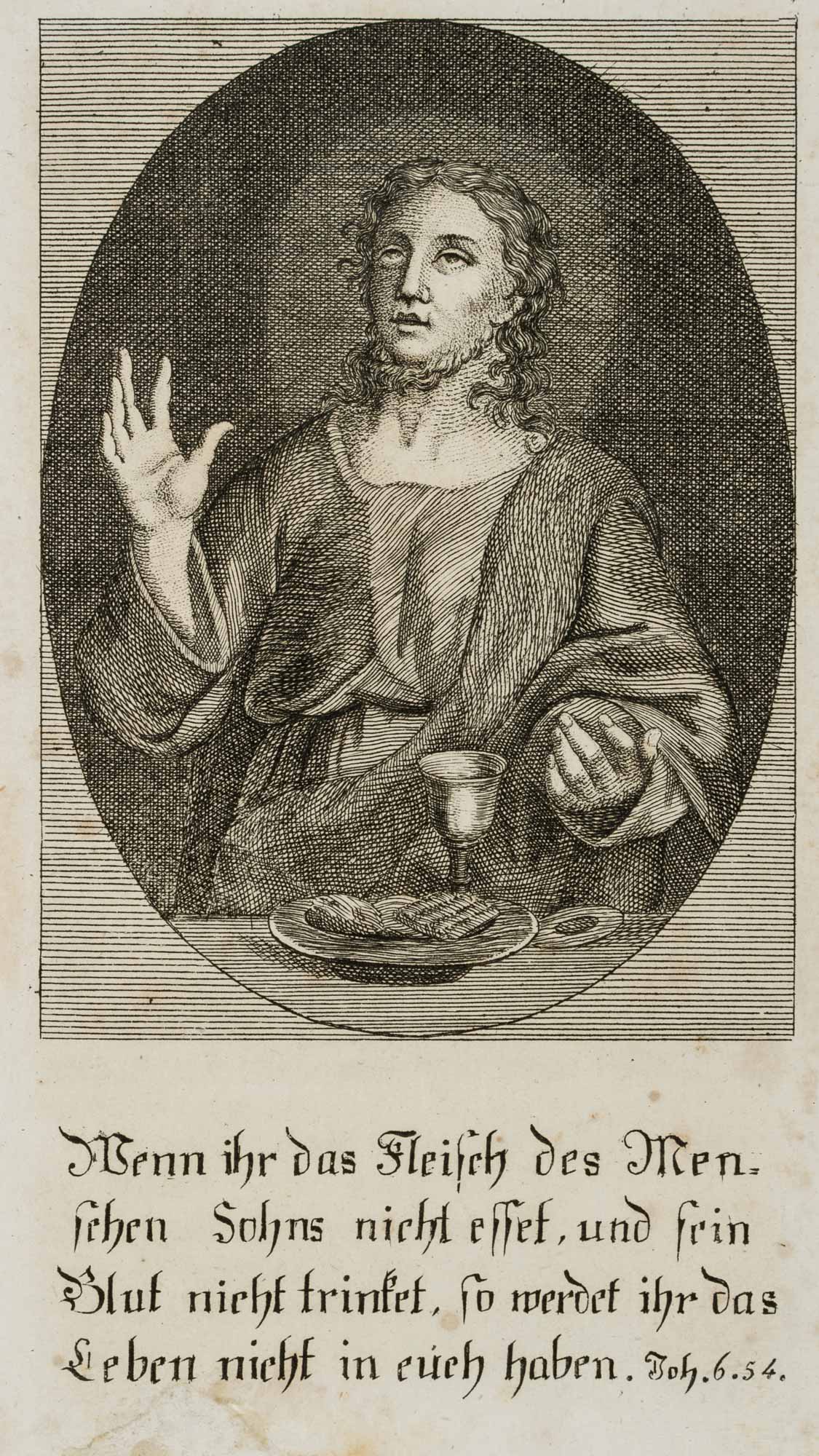 - Description: “If you do not eat the flesh of the Son of Man and drink his blood, you will not have life in you/Joh. 6.54”, printed by Ignaz Mair in Heidelberg, 1812.