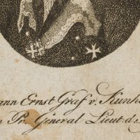 - Beschreibung: Brustbild-Portrait im Oval, darunter Legende.