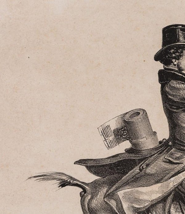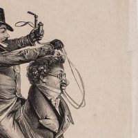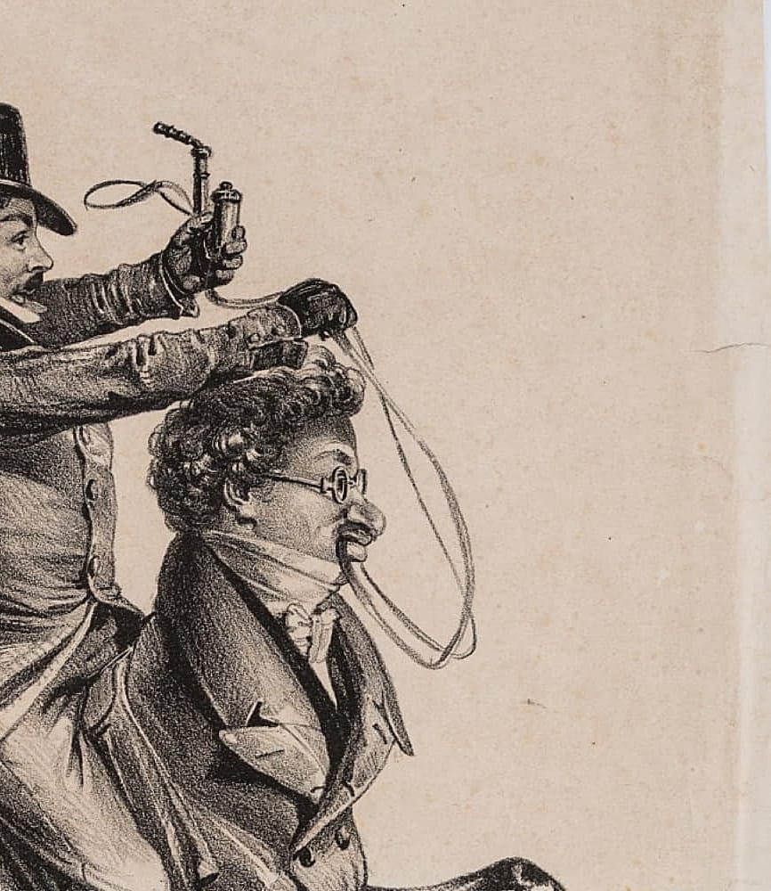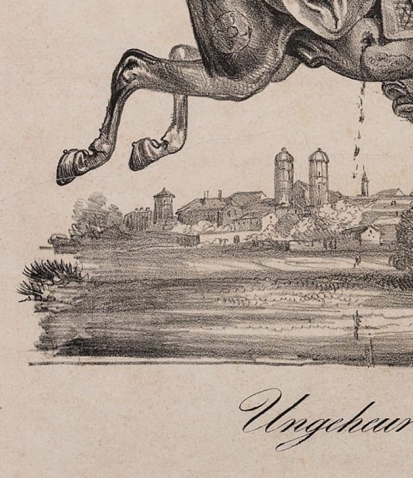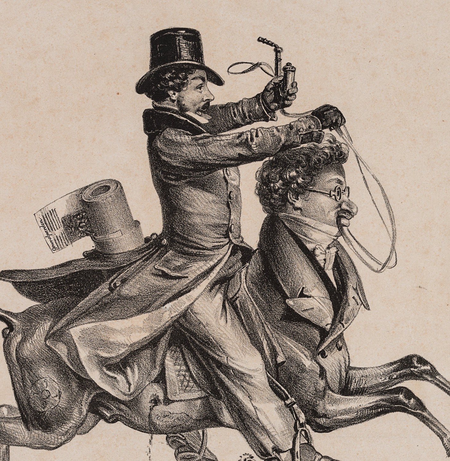 - Description: The painter Jacob Friedrich HAHN (c. 1805 Nuremberg – c. 1870 ibid.) rides the journalist Moritz Gottlieb SAPHIR (actually Moses Saphir, 1795 Lauschbrünn – 1858 Baden) as a centaur. Biting satire on the quarrel between the painter Jacob Friedrich Hahn and the author and journalist Moritz Gottlieb Saphir, which escalated on 27 November 1830 when Hahn beat up Saphir in the street.