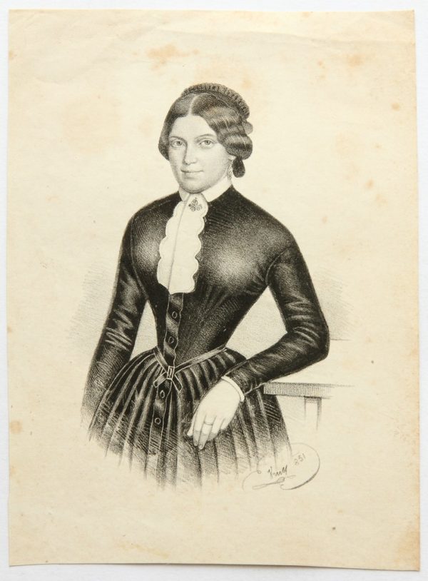 Unbekannt (19. Jahrhundert), Junge Frau in schwarzem Kleid, 1851, Lithographie