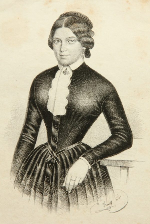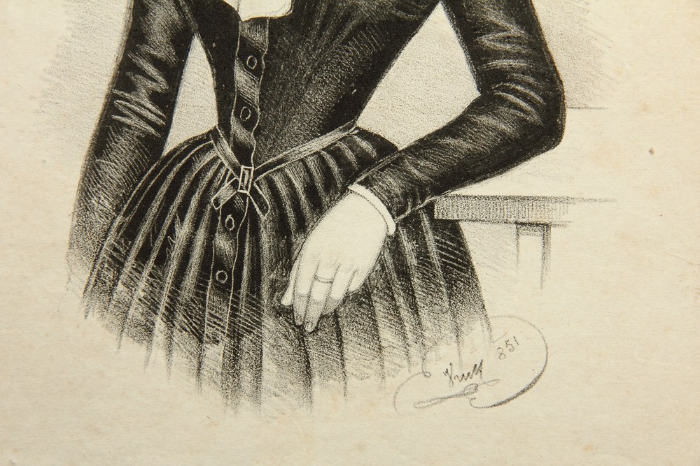 Unknown (19th century), Young woman in black dress, 1851, Lithography