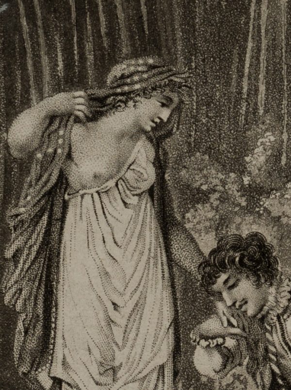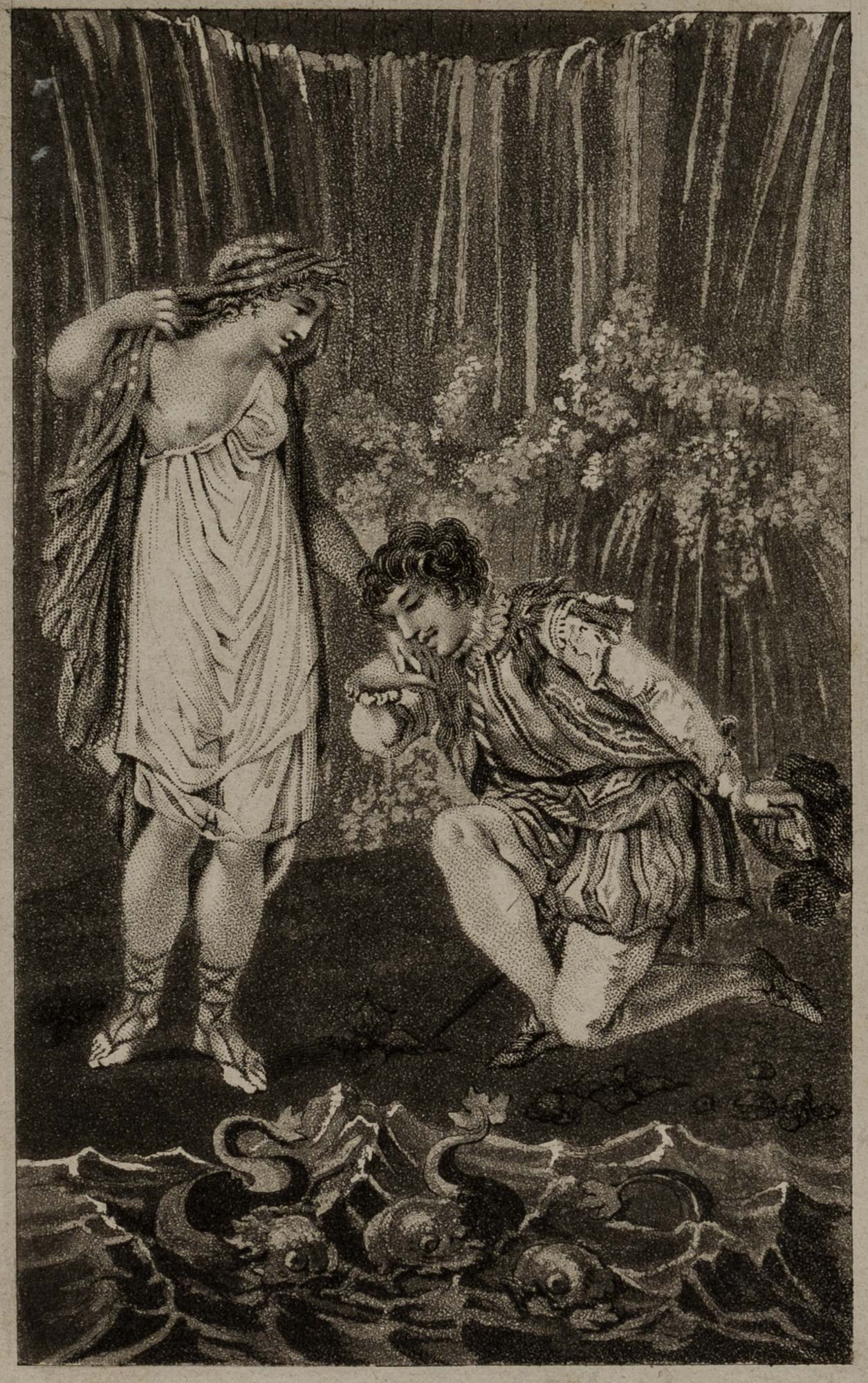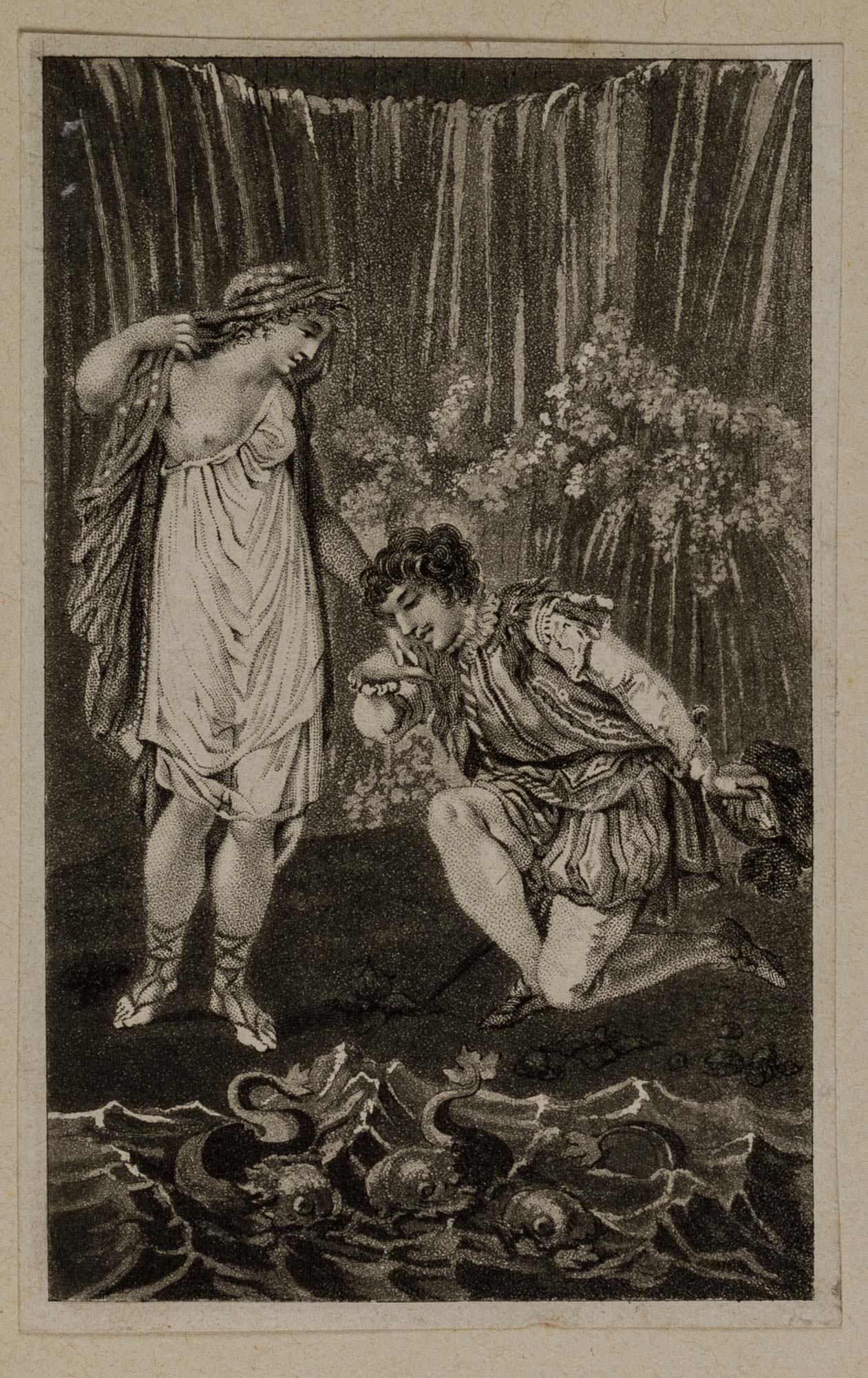Unbekannt (19. Jahrhundert), Liebespaar am Wasserfall, Sammlung Hasselmann, 19. Jahrhundert, Aquatinta