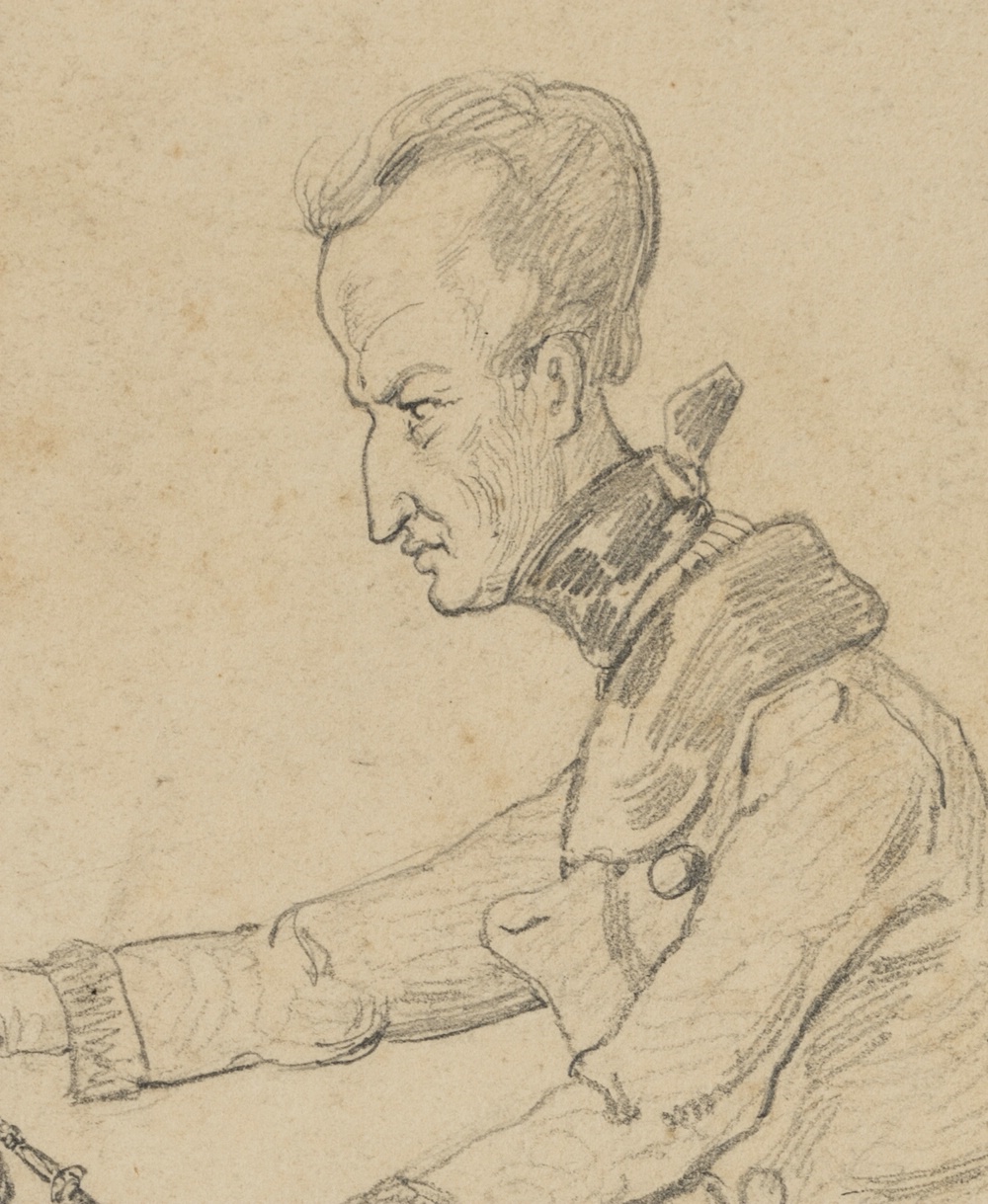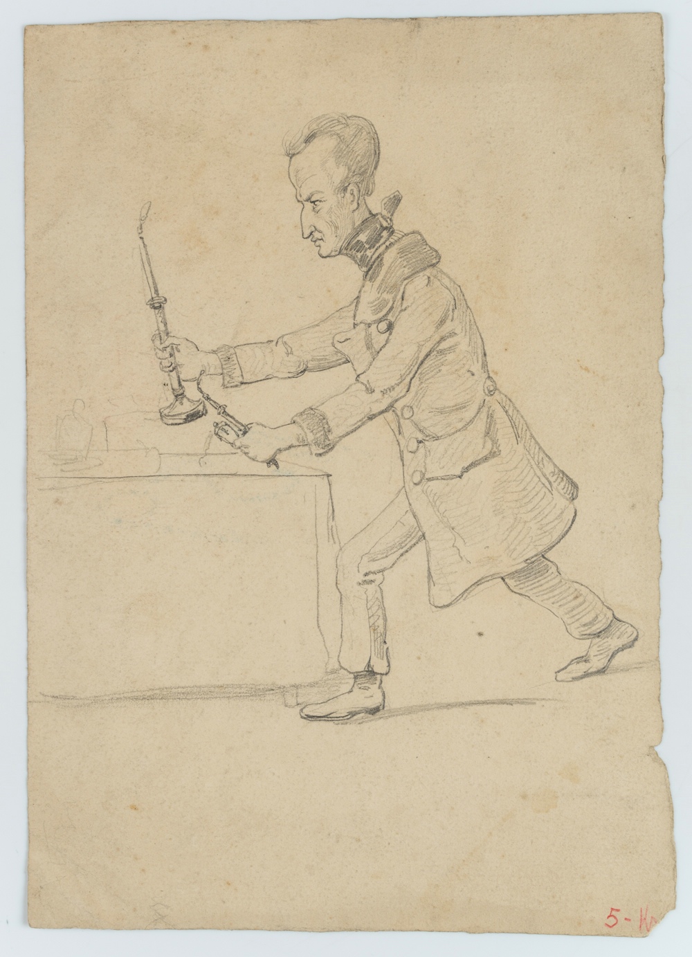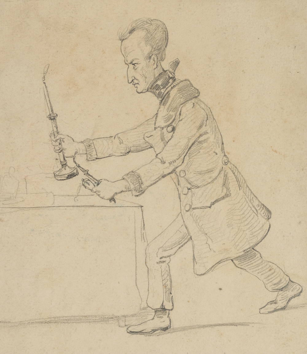 Unknown (19th century), Caricature of an officer with candle and pipe, Denmark, c. 1880, Pencil
