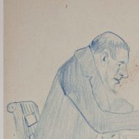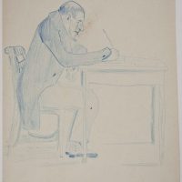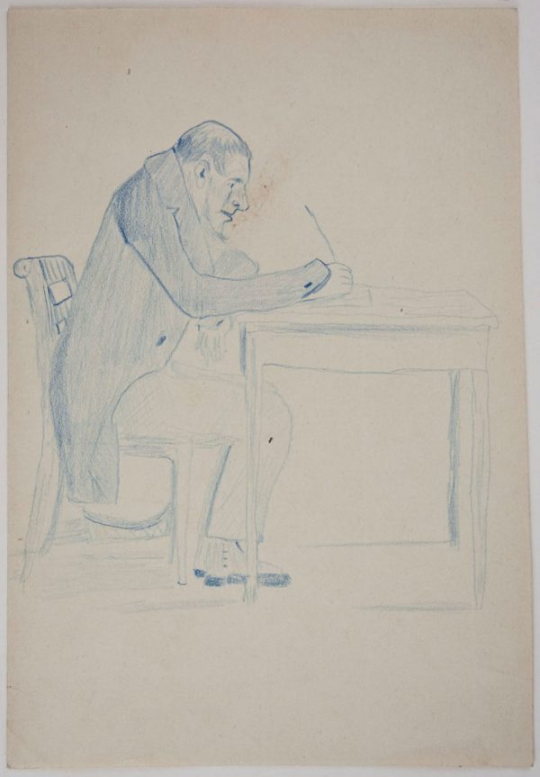 - Description: Caricature, Writing Man, c. 1870, German. Description: Original drawing in blue on paper.