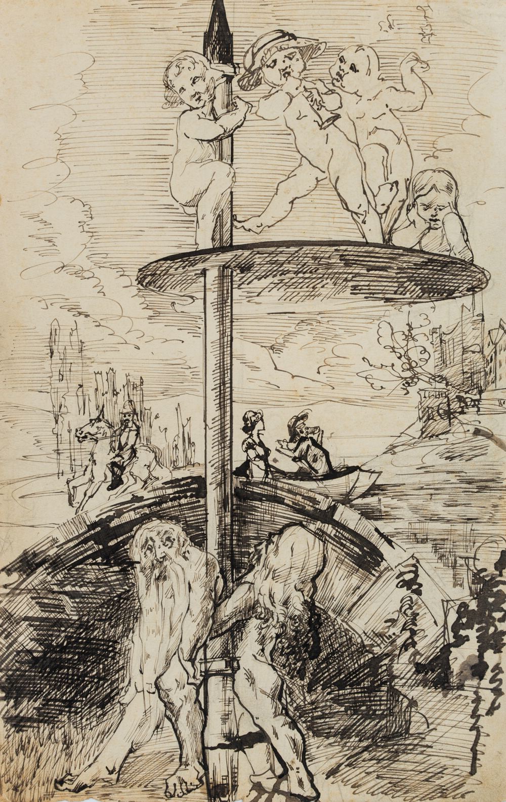 Unbekannt (19. Jahrhundert), Allegorie und Märchendarstellung, 19. Jahrhundert, Federzeichnung