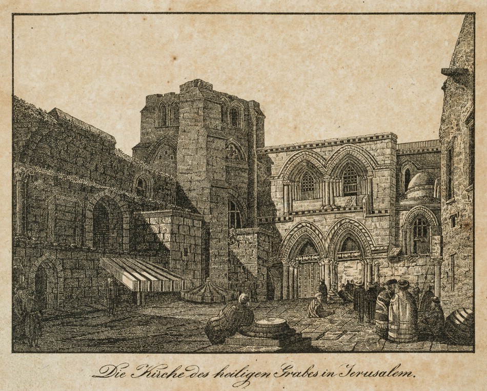 - Bezeichnung: Unten Mitte bezeichnet: “Die Kirche des heiligen Grabes in Jerusalem”.