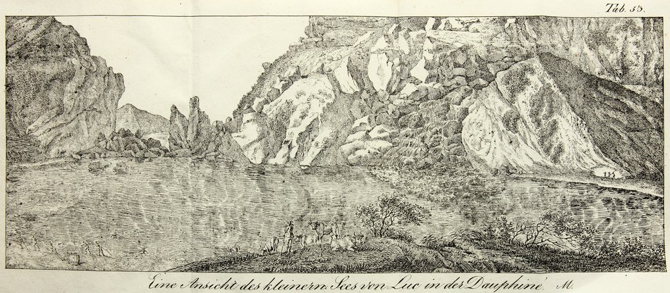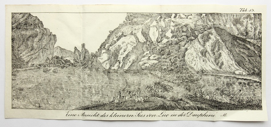 Unbekannt (19. Jahrhundert), “Eine Ansicht des kleinern Sees von Luc in der Dauphiné”, 1818, Lithographie
