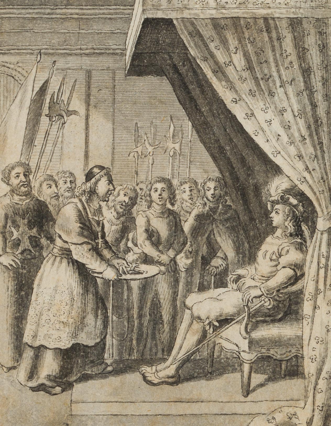 Unknown (19th century), King Philip August receives the keys of Jerusalem, 19th century, Etching