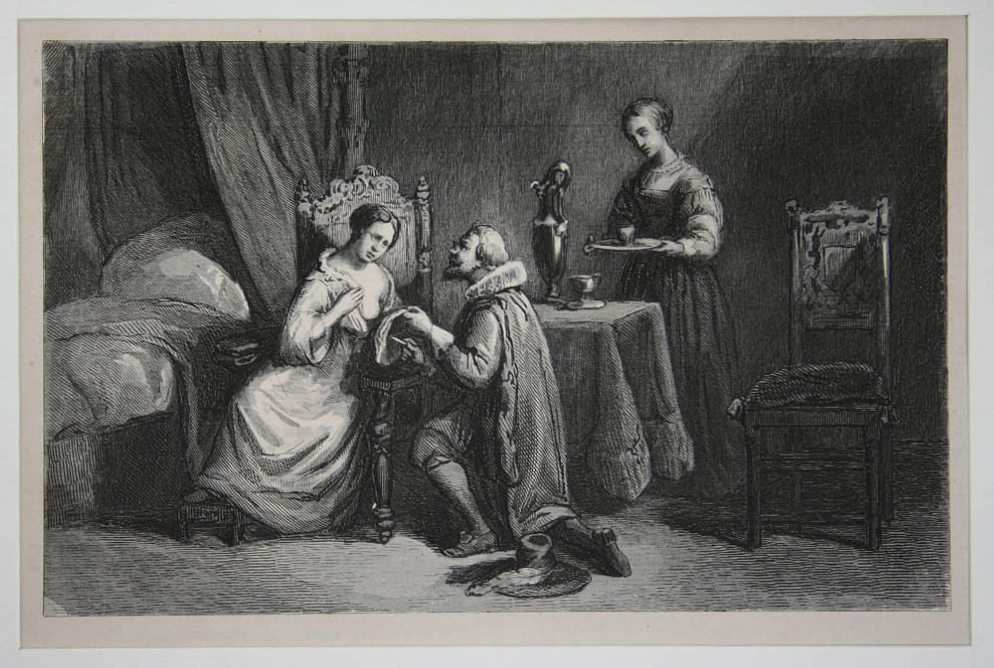 Unknown (19th century), Sick visit to the beloved, c. 1890, Wood engraving
