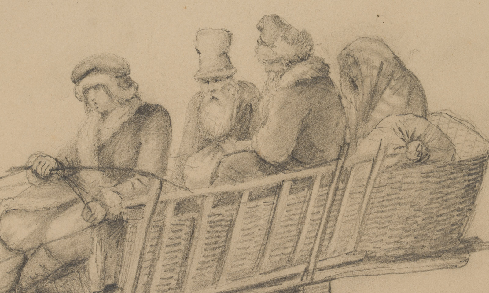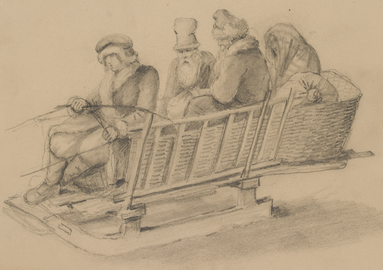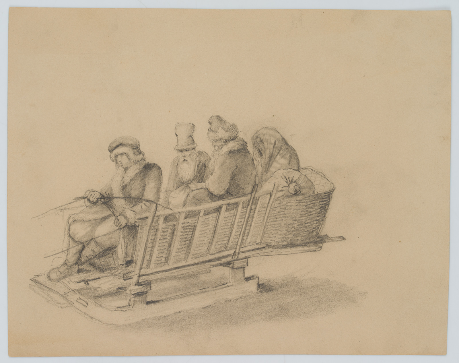 Unknown (19th century), Carriage ride in the Russian winter with travellers, c. 1850, Pencil