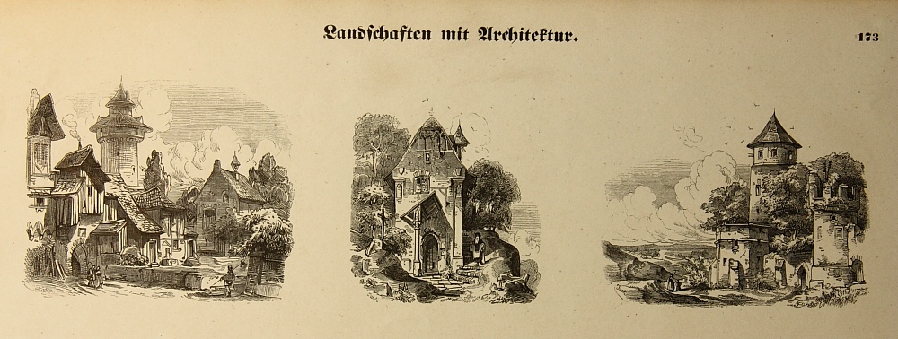 - Beschreibung: Jeder Stich ist im Stock vom selben Künstler signiert “Jovak”?, “Jank”? Die mittleren beiden Drucke sind zusätzlich im Druckstock auf 1856 datiert.. Münchener Bilderbogen Nr.173, Landschaften und Architektur Süddeutschlands