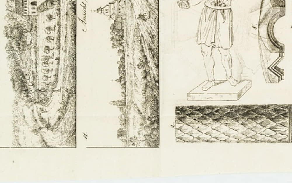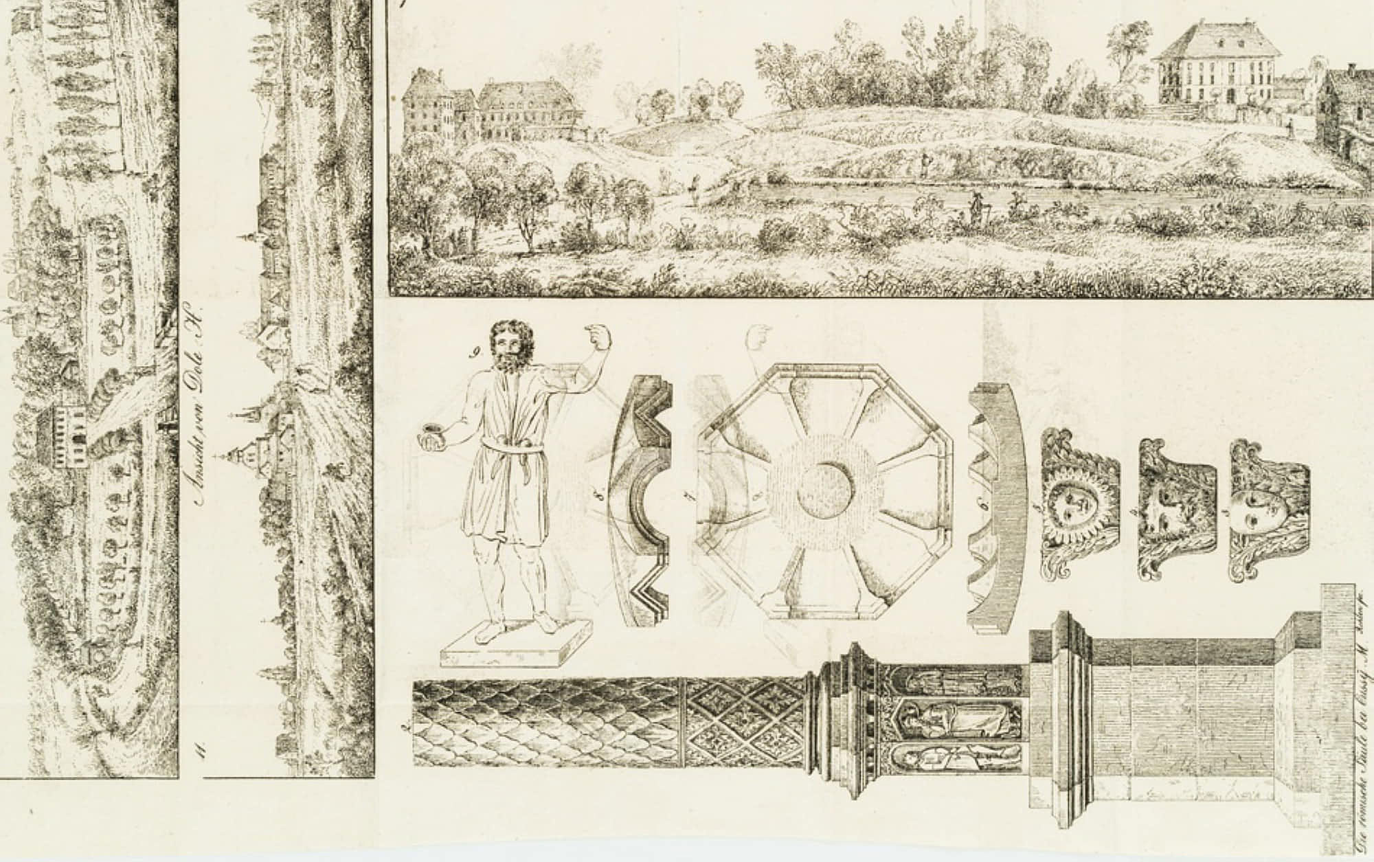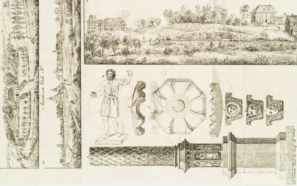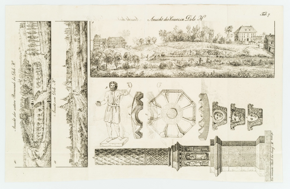 - Bezeichnung: Rechts unter dem Bild der römischen Säule mit “Rchlen fec.” signiert. Bilder sind teilweise betitelt. Blatt oben mit “Taf. 7” nummeriert.