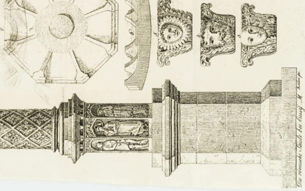 - Inscription: Signed “Rchlen fec.” on the right below the image of the Roman column. Images are partly titled. Sheet numbered “Taf. 7” at the top.