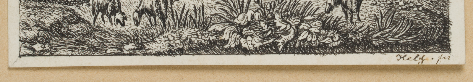 • Inscription: Signed unrecognisably below the print on the left.